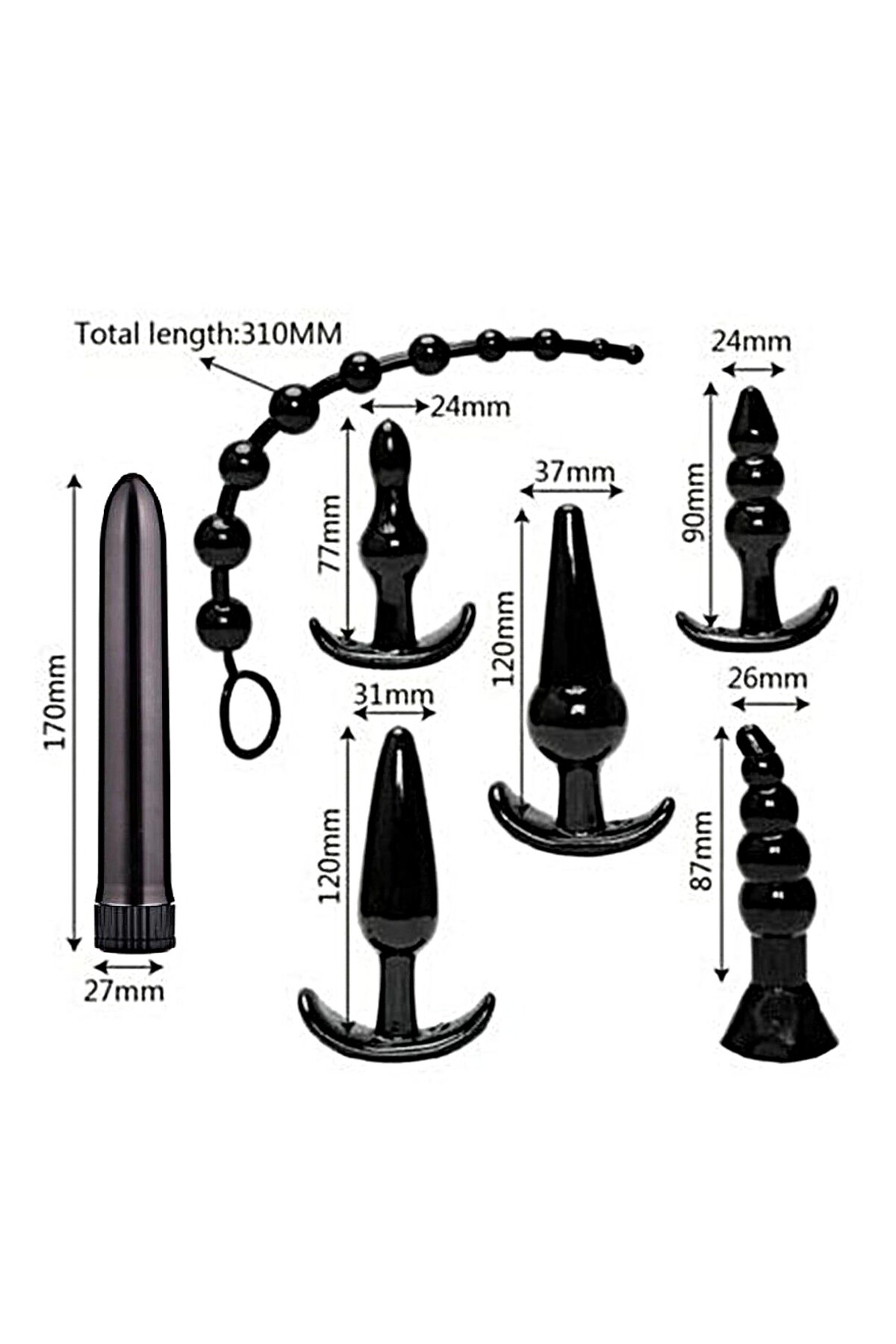 Joytoy 7 Parça Anal Tıpa Başlangıç Seti-Esnek Boğumlu Anal Tıpalar-Titreşimli Anal Vajinal Vibratör