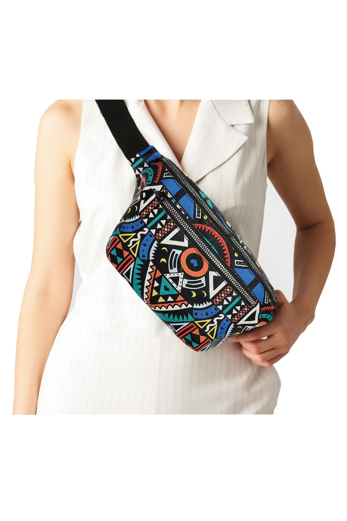 – Renkli desenleriyle dikkat çeken çapraz omuz askılı bel çantası, günlük kullanıma uygun şıklığı ve rahatlığı bir arada sunar