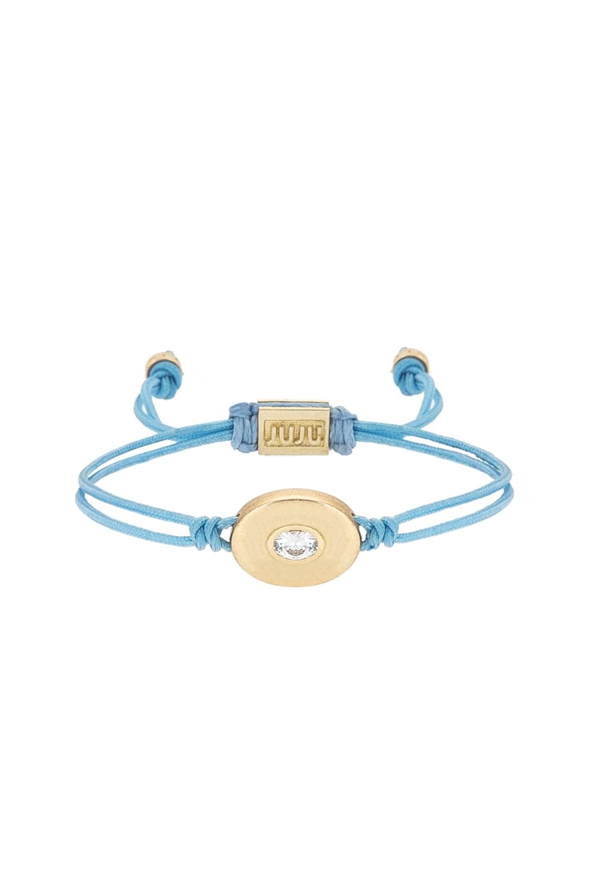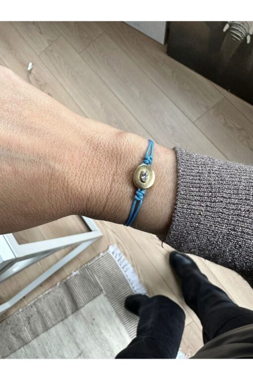Juju Bronz Ortası Beyaz Taşlı Elips Turkuaz Ipli Bileklik
