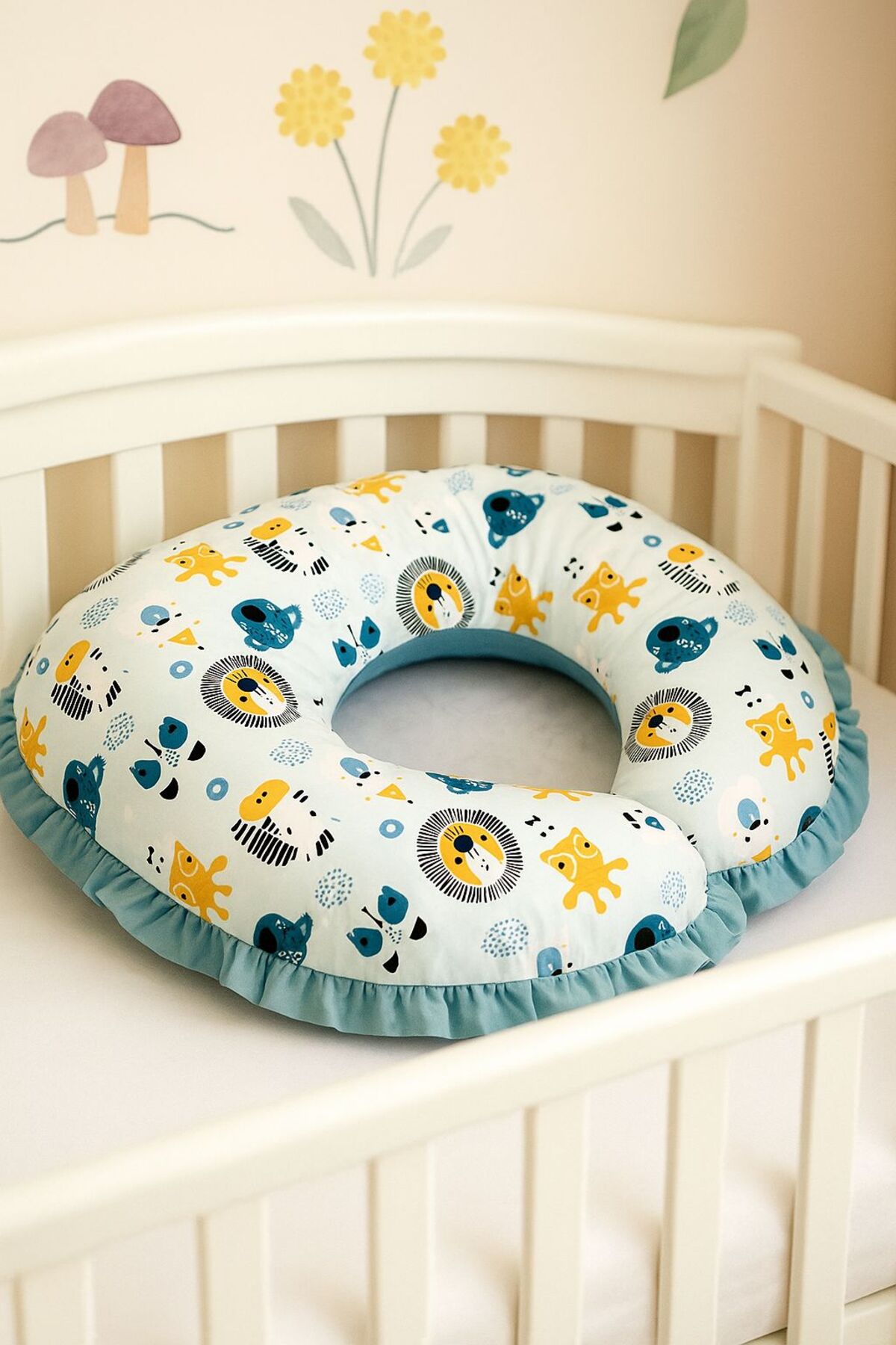 JUNİPERUS Fırfırlı Emzirme Yastığı Ve Destek Minderi Çift Taraflı %100 Pamuk Kumaş