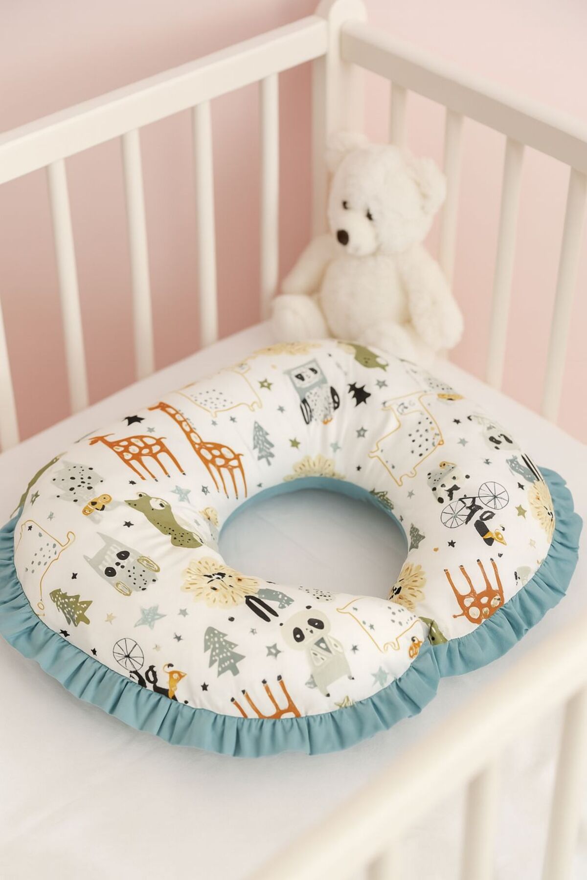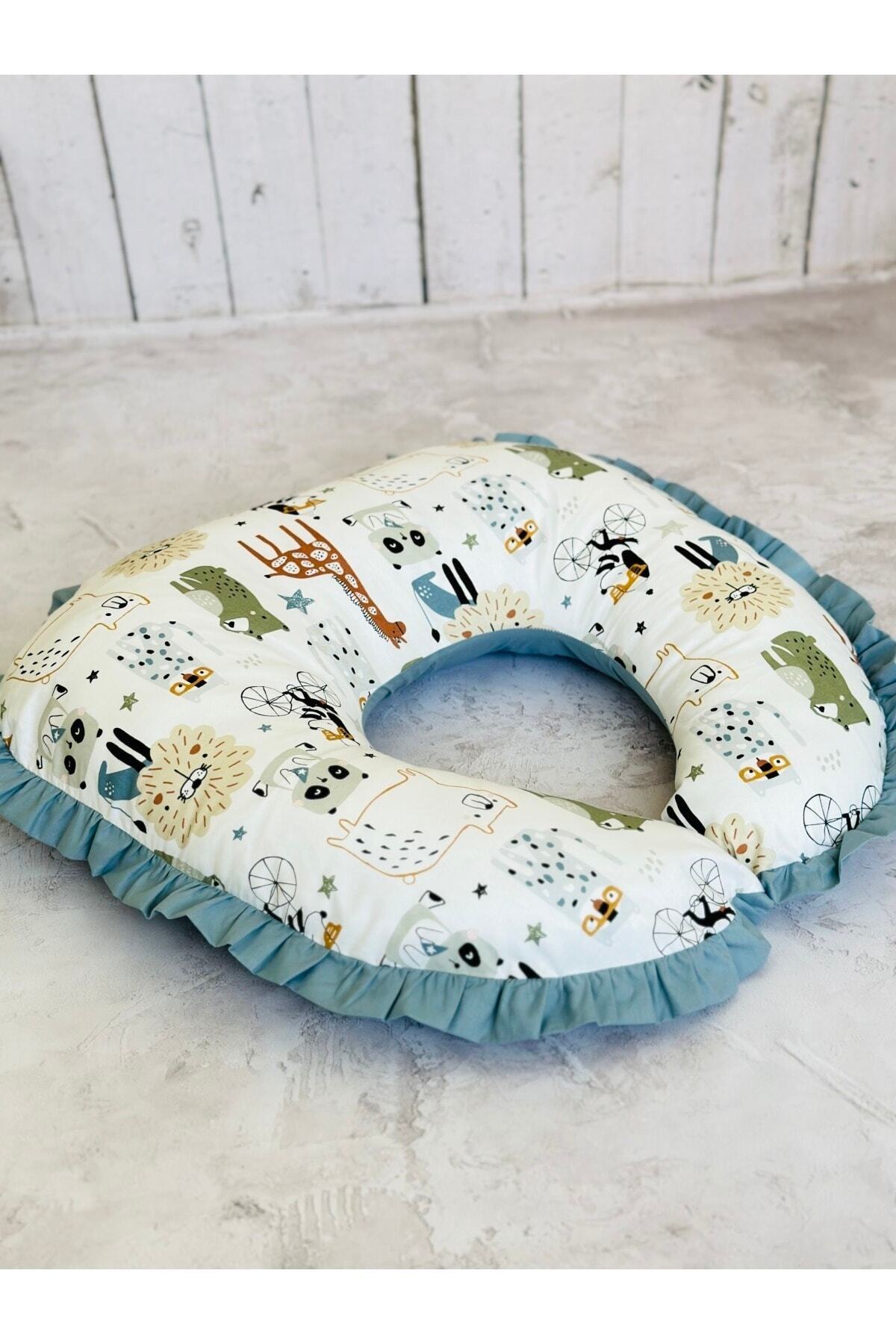 JUNİPERUS Fırfırlı Emzirme Yastığı Ve Destek Minderi Çift Taraflı %100 Pamuk Kumaş