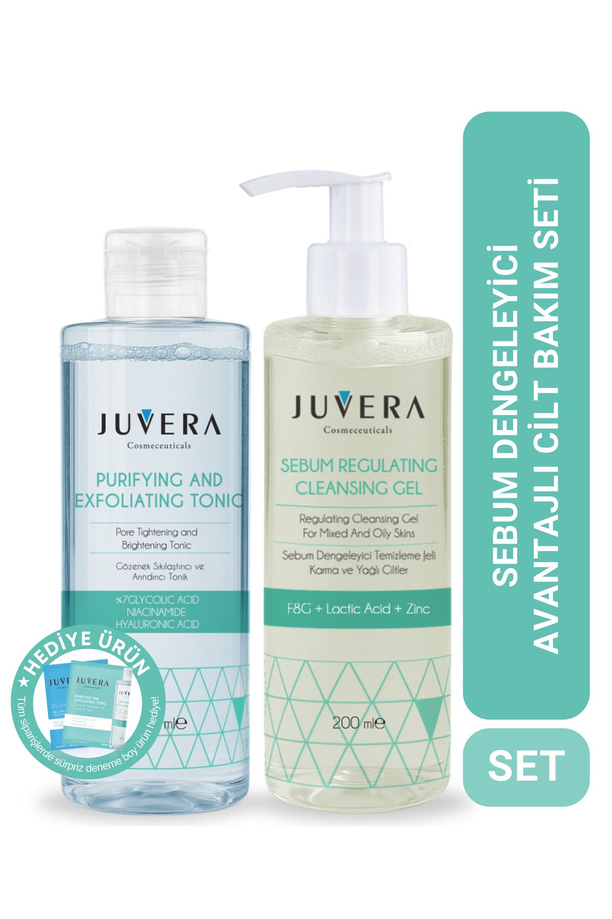 JUVERA Cosmeceuticals Yağlı Ve Akneye Eğilimli Ciltler Için Temizleme Jeli Ve Gözenek Sıkılaştırıcı Arındırıcı Tonik