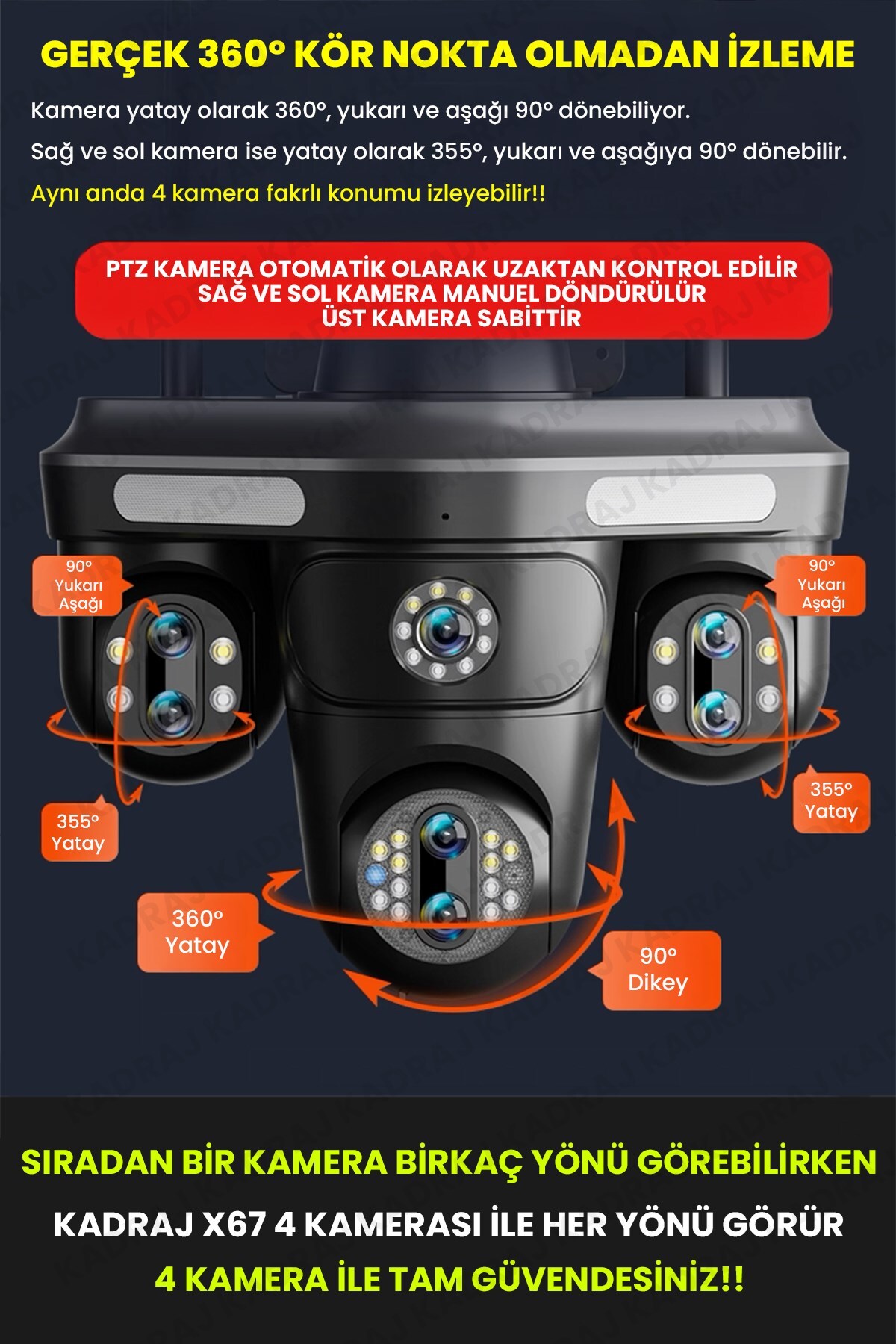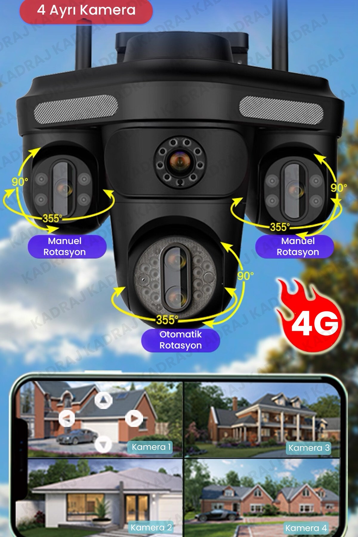 Kadraj 4 Kameraları 4G – eSim Solar Panelli, Her ay 15GB Turkcell 1 Yıl Hediyeli, 7/24 Kayıt Aov, Hareket A
