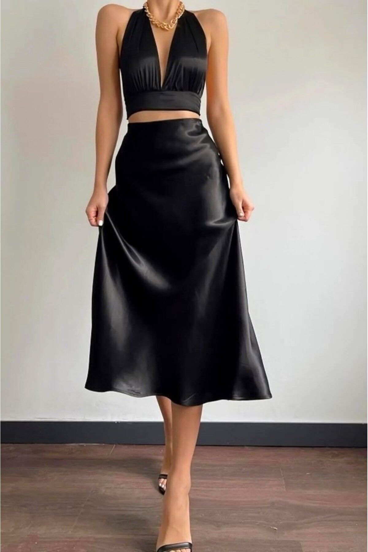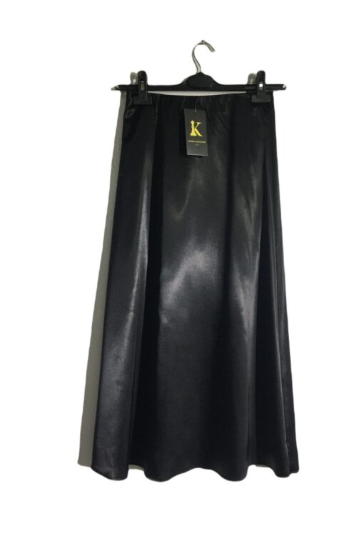 Kahra Collection Siyah Midi Boy Saten Etek Beli Lastikli Midi Etek