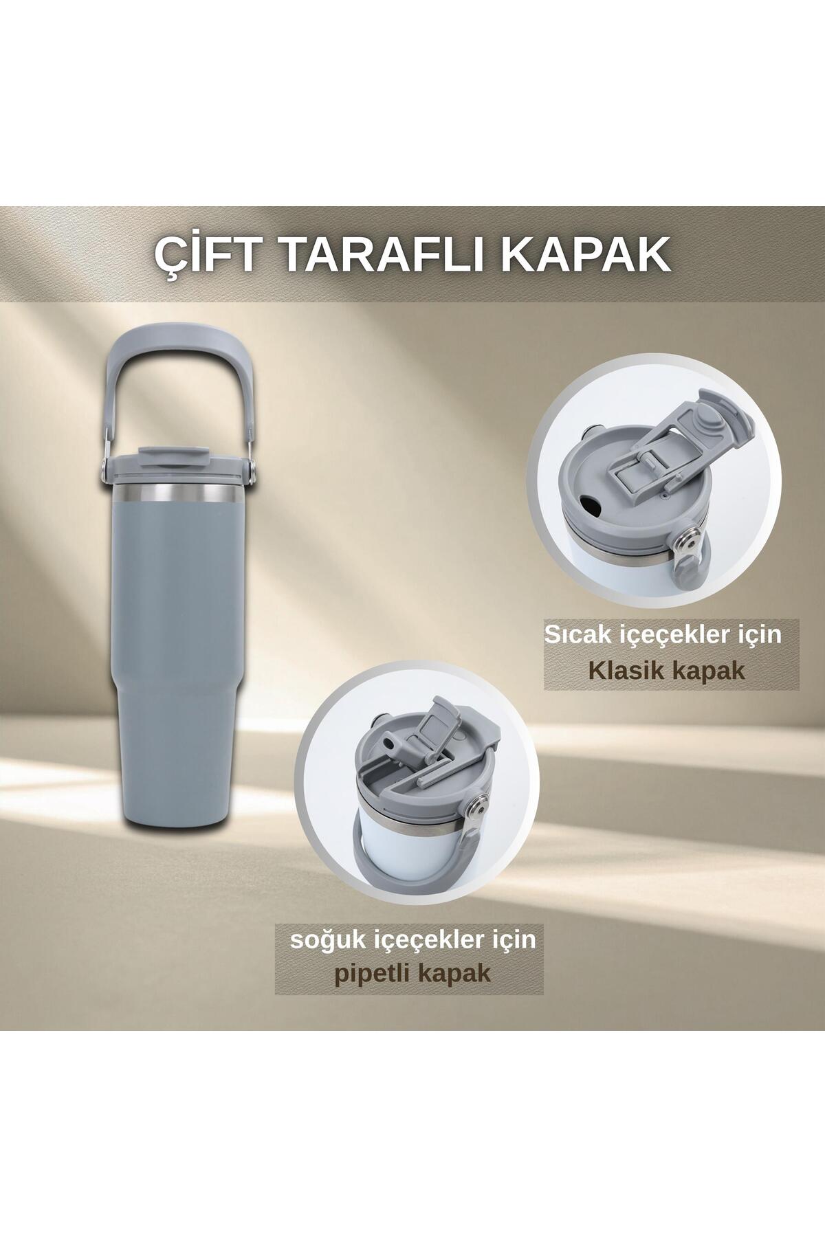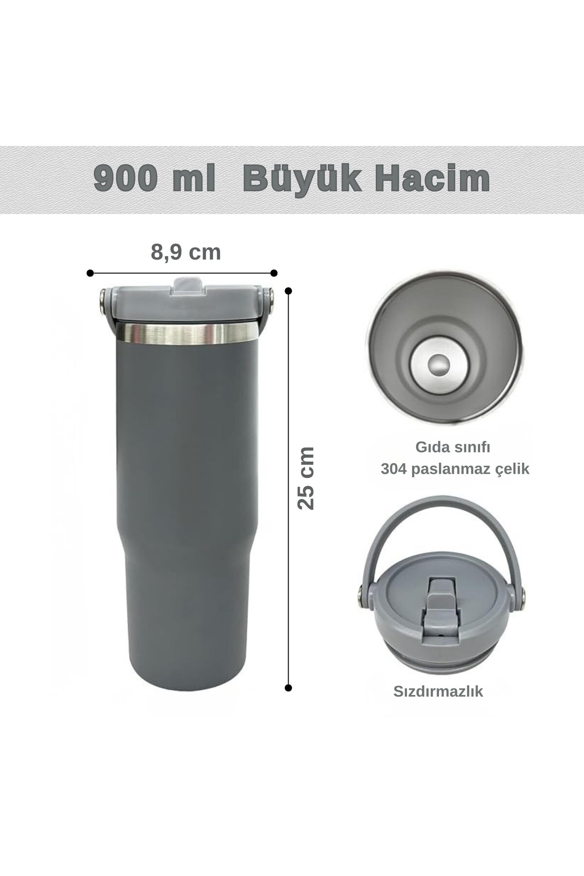 Kale Termos Pipetli Termos Bardak 900 ml Paslanmaz Çelik -Çift Kullanımlı Kapak