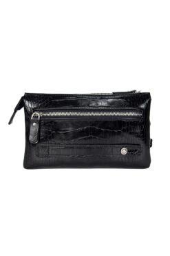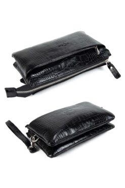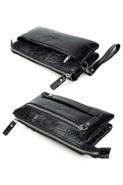 KANGAROO KINGDOM Siyah Erkek El Portföy Clutch Çantası Hakiki Dana Deri Kroko 5488-cs