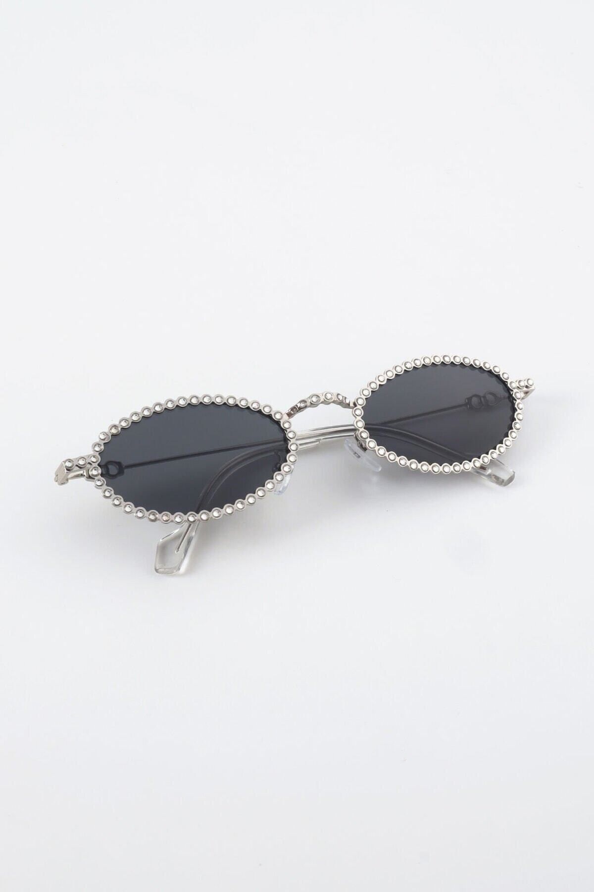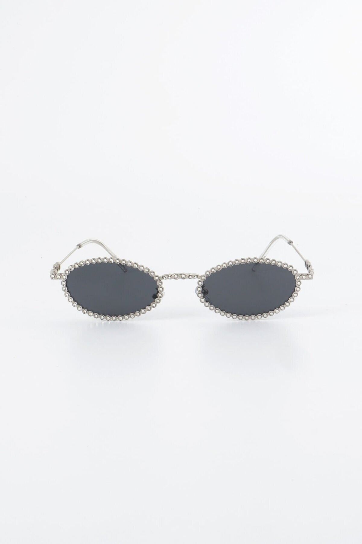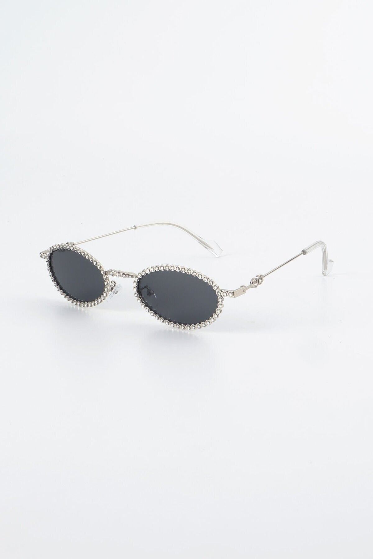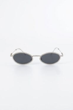 Kapin Kristal Taşlı Elips Metal Güneş Gözlüğü – Gümüş