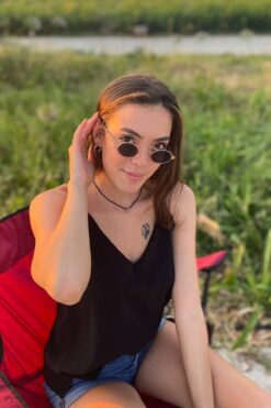 Kapin Oval Tel Metal Tasarım Elips Güneş Gözlüğü – Siyah Cam
