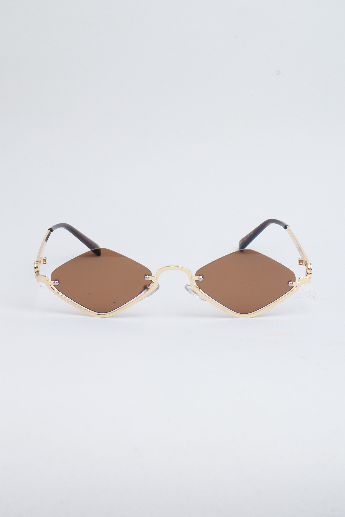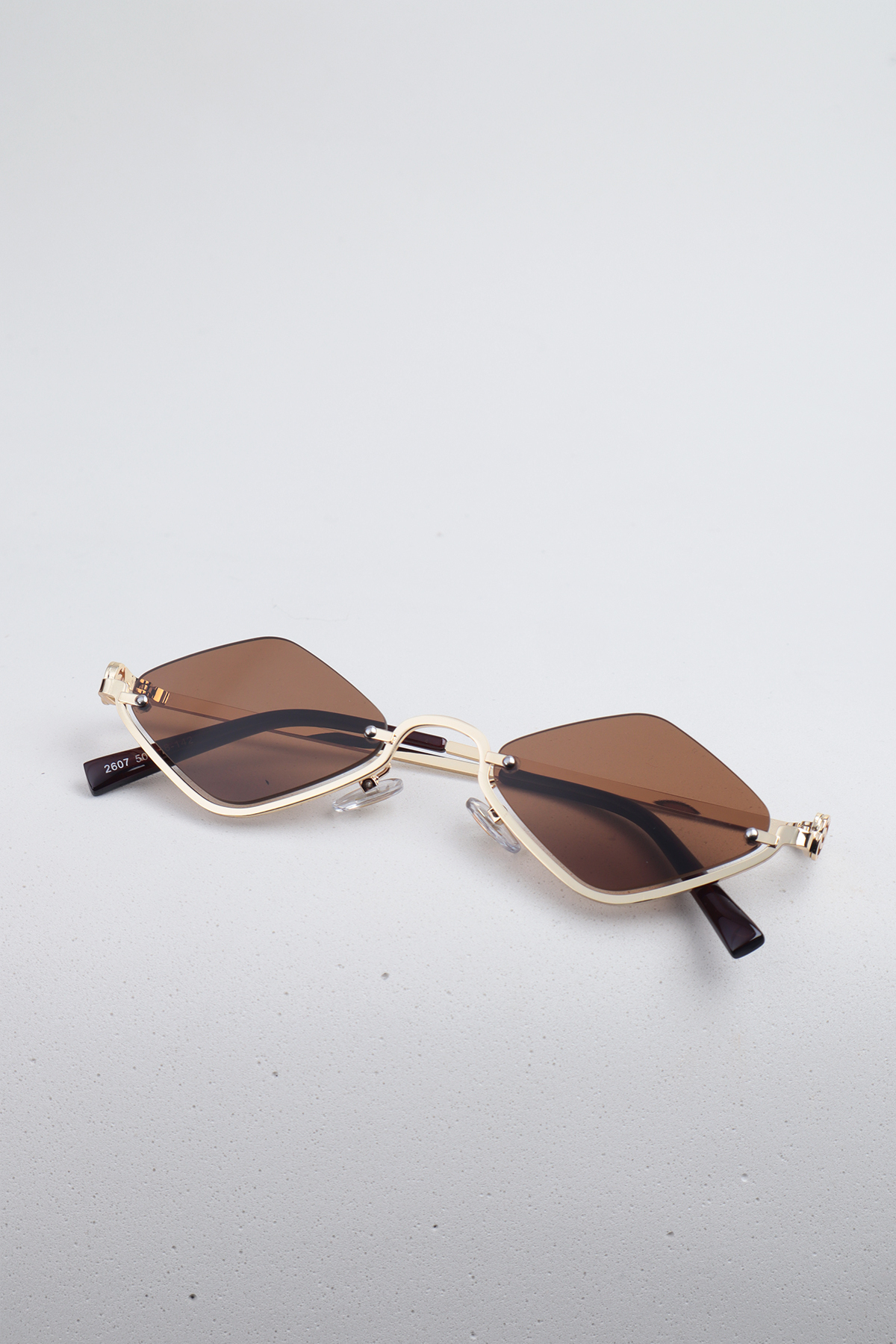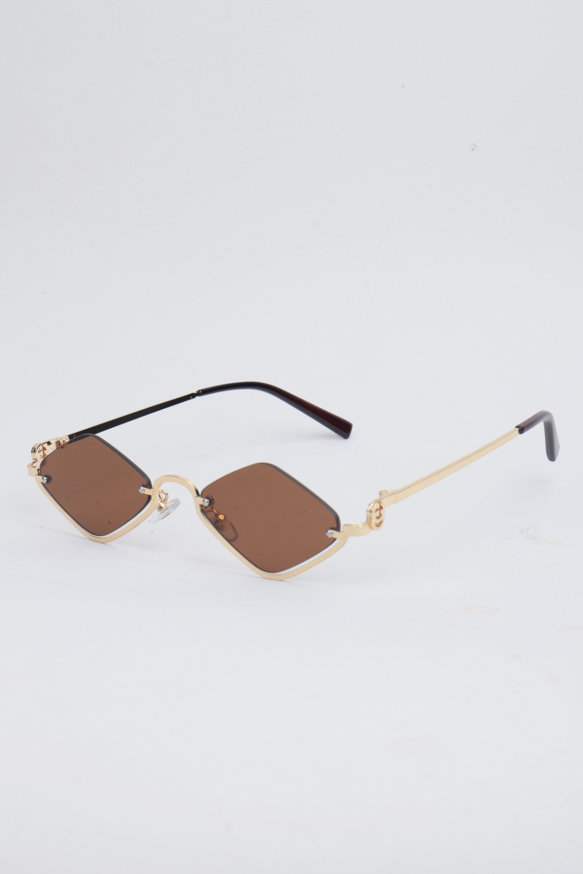 Kapin Talya Çerçevesiz Karo Vintage Tasarım Kadın Güneş Gözlüğü – Altın Çerçeve Kahve Cam