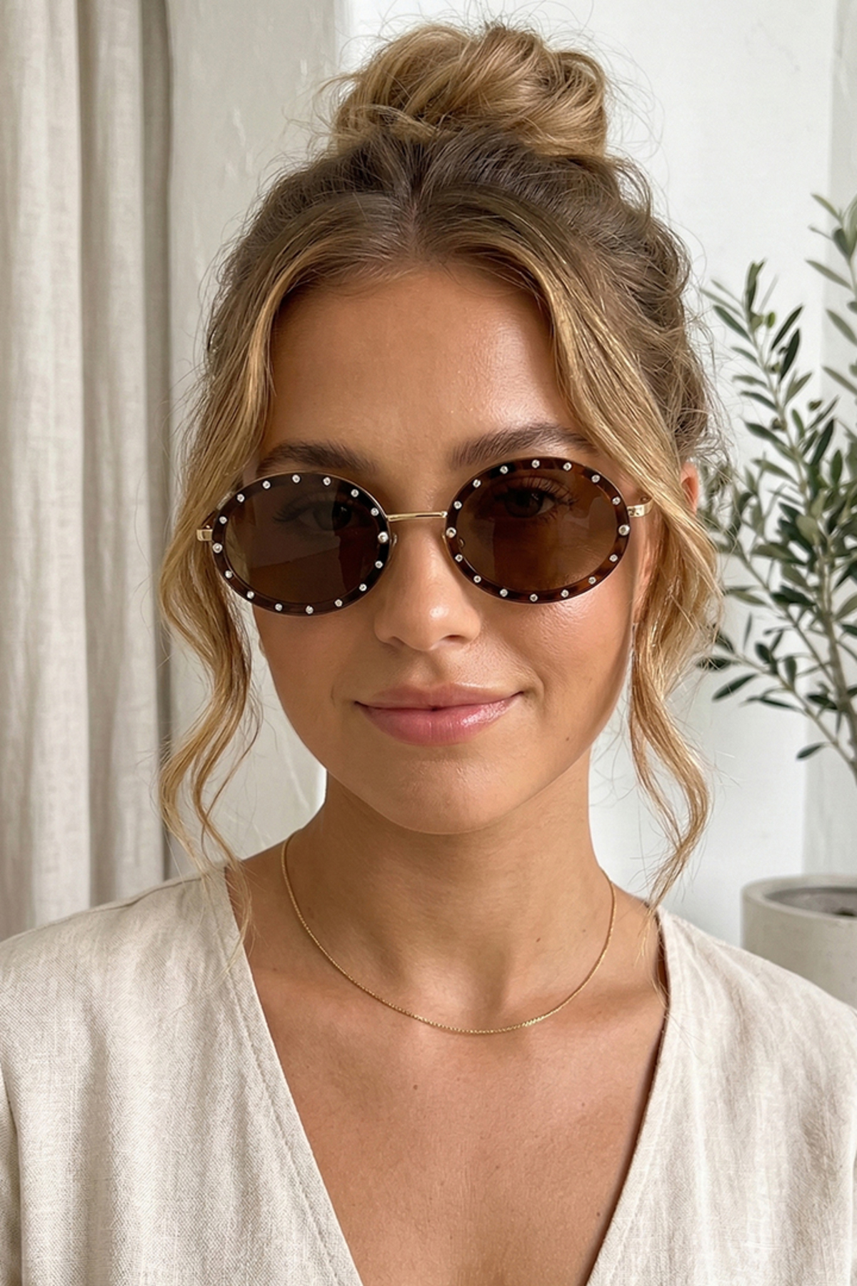 Kapin Taşlı Oval Güneş Gözlüğü – Kahve