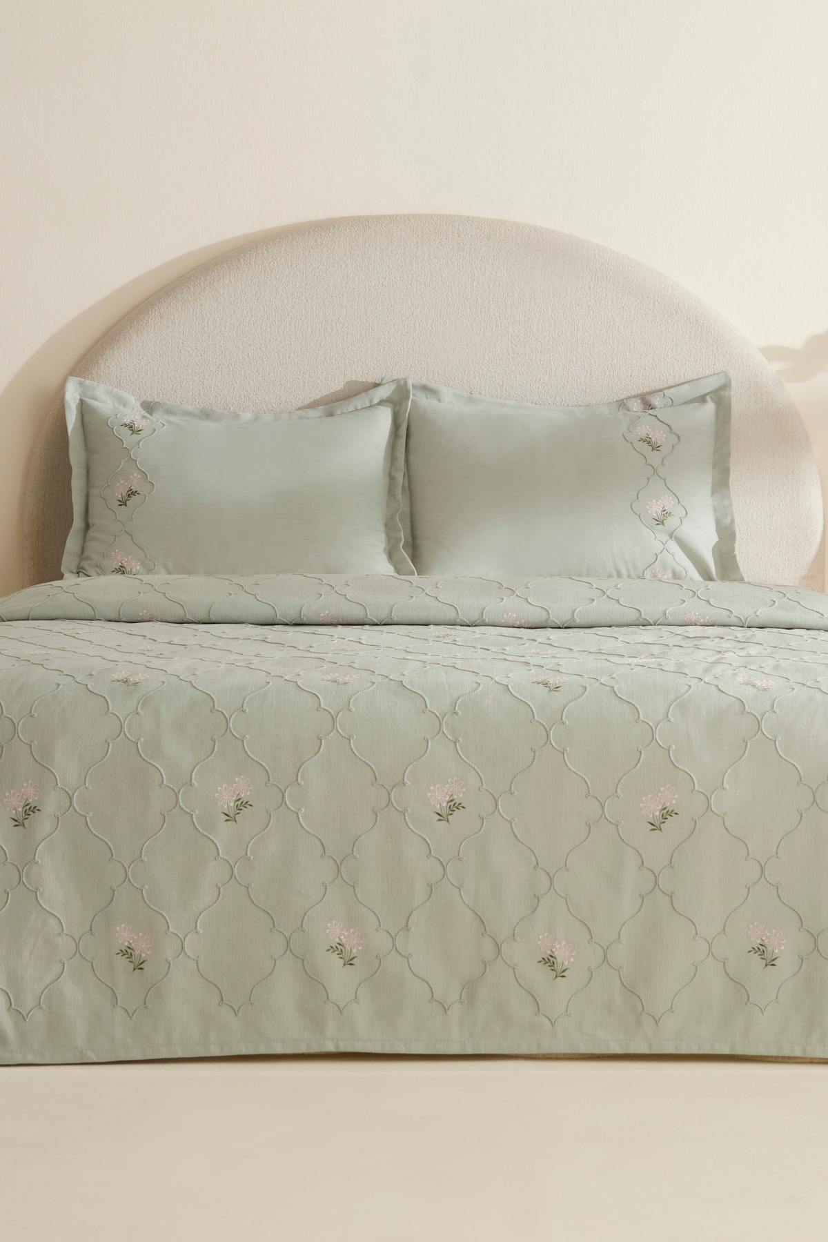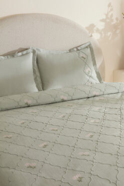Karaca Home Myra Çift Kişilik Çiçekli Yatak Örtüsü Adaçayı
