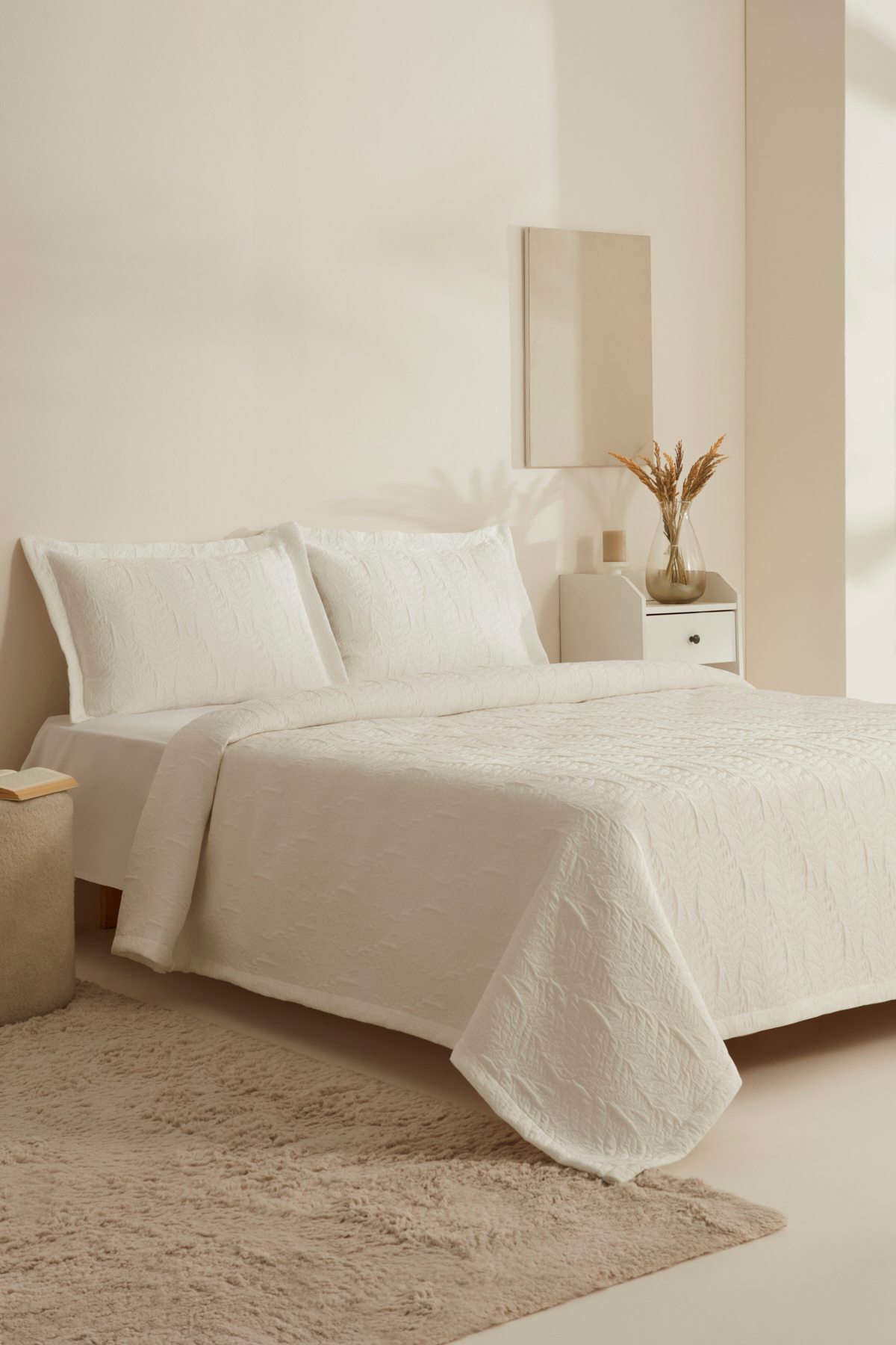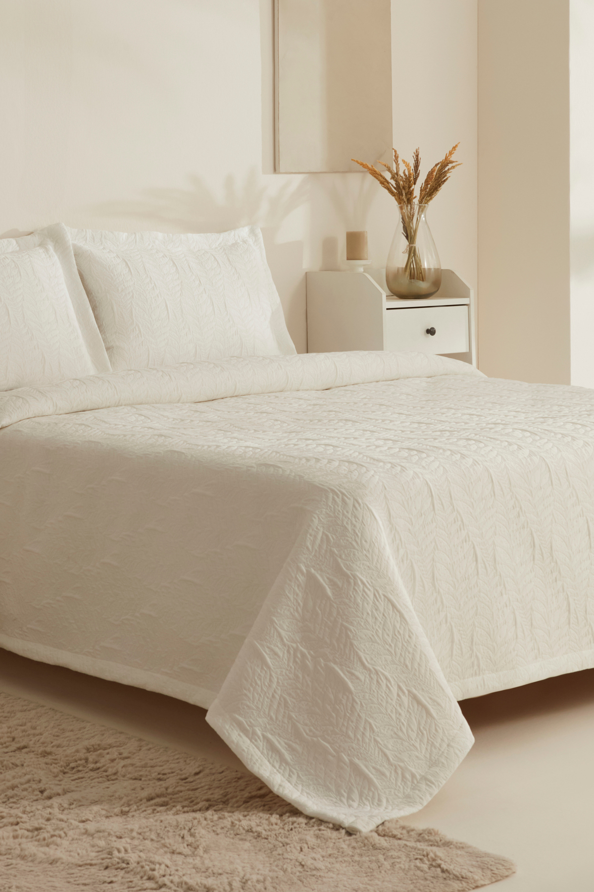 Karaca Home Serenity Çift Kişilik Yatak Örtüsü Seti Beyaz