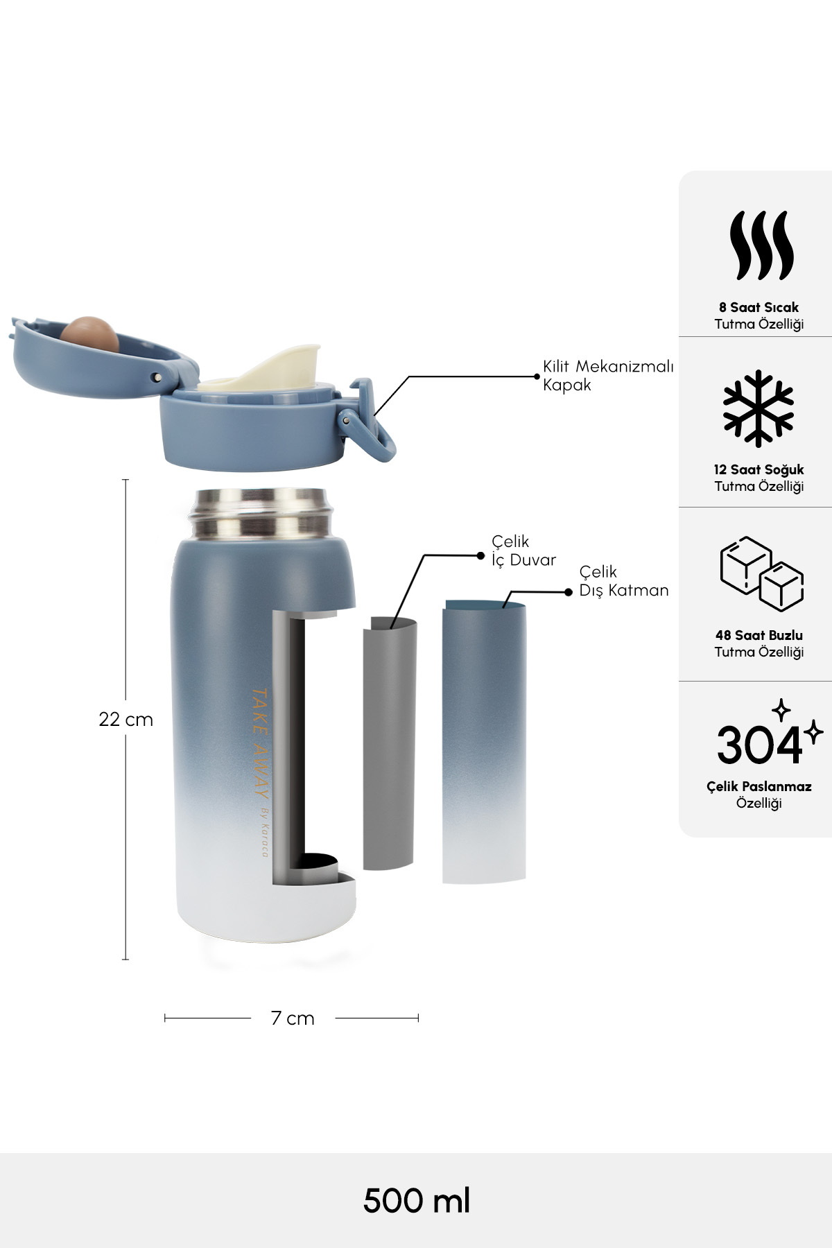 Karaca Paslanmaz Çelik Skyfall Çelik Sızdırmaz Termos 500 Ml Mavi 500 ml Mavi