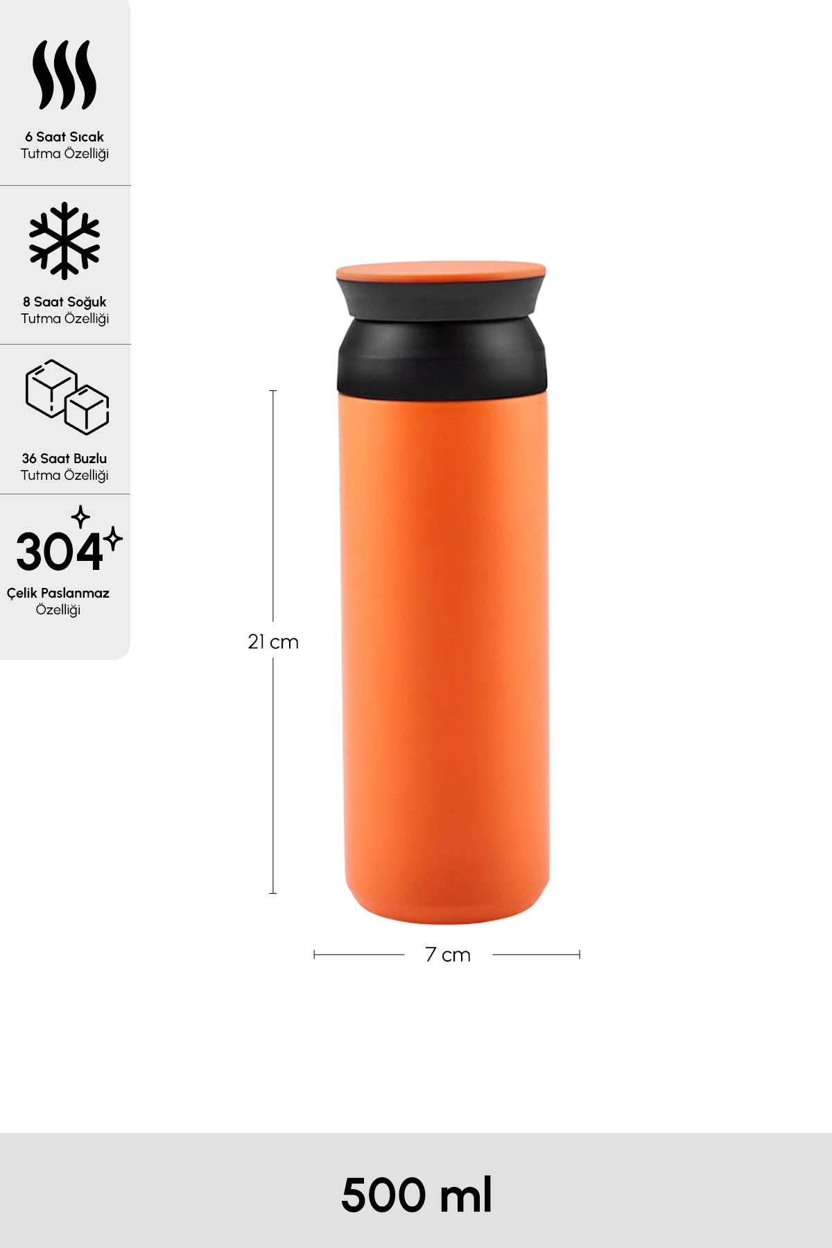 Karaca Rainbow Orange Paslanmaz Çelik Termos 500 ml (8 SAATE KADAR SICAK/SOĞUK TUTMA)
