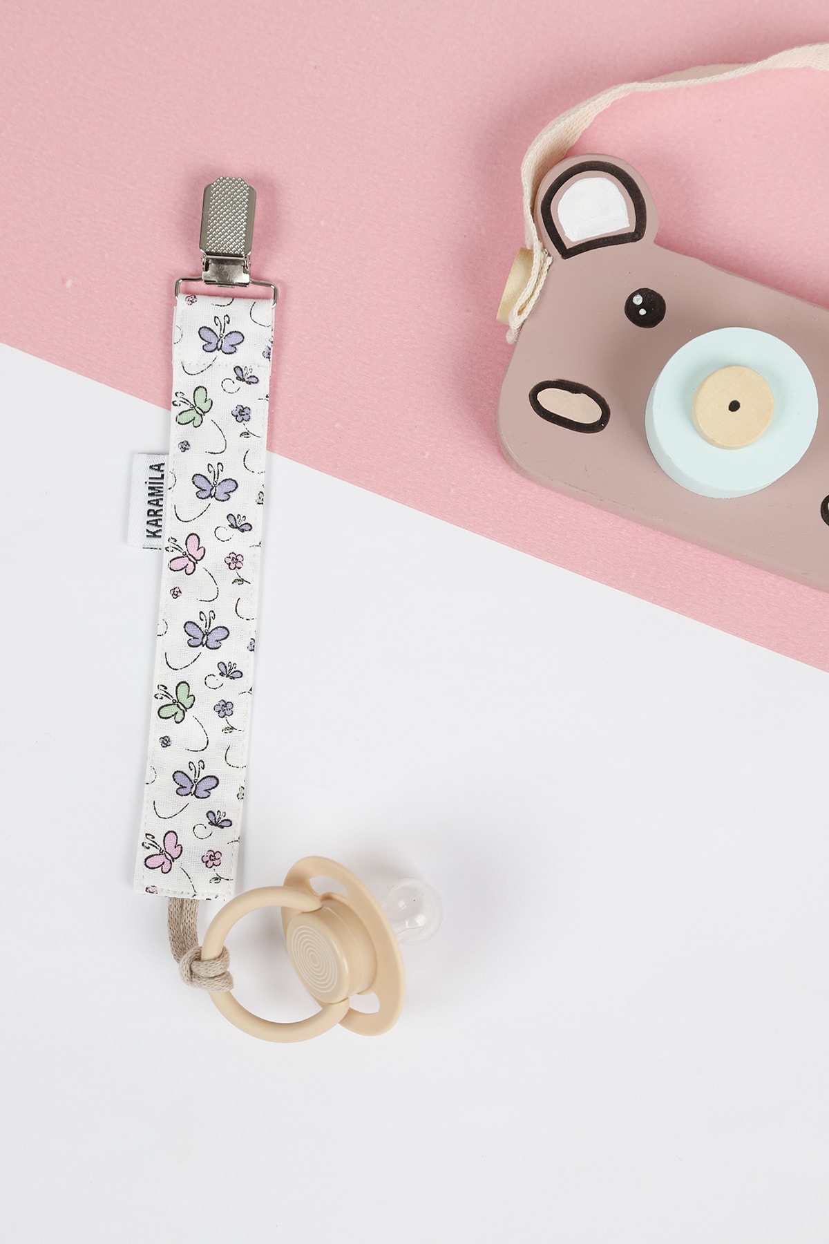 KARAMİLA %100 Pamuk Kelebekli Emzik Askısı Emzik Tutacağı