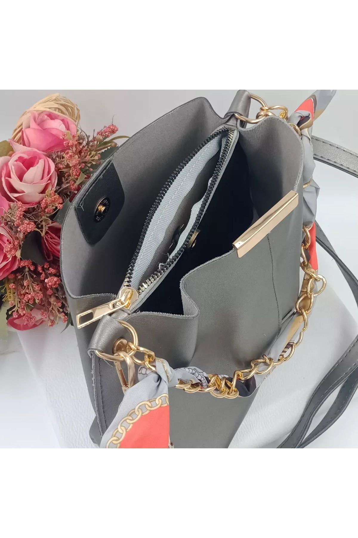 karanfil Zincir Aksesuarlı Yumuşak Deri 3 Bölmeli El Kol Ve Omuz Çantası ürünü ucuz fiyat, hızlı kargo imkanı ile hemen sitemizden sipariş verin.