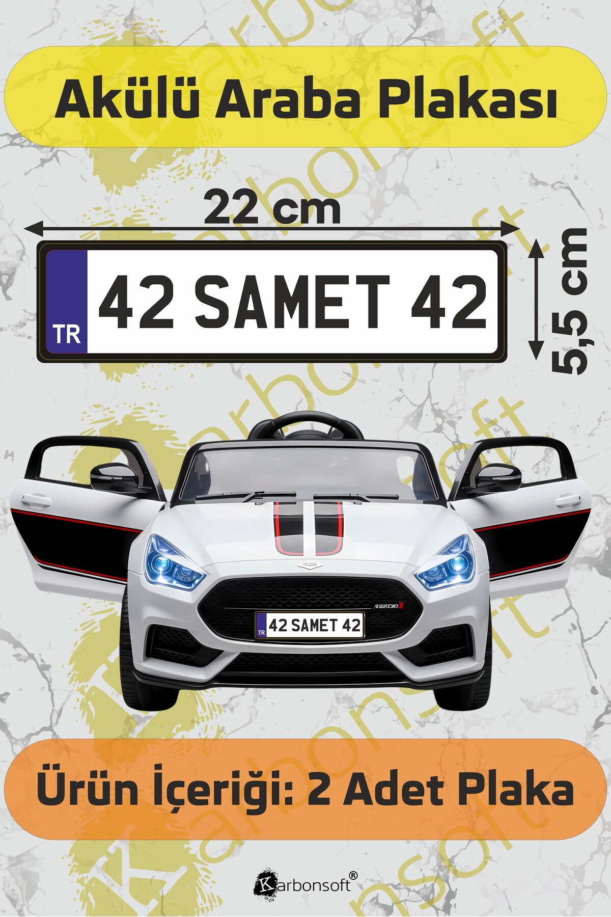 karbonsoft Akülü Araba Plakası | Kişiye Özel Akülü Araba Plakası | Akülü Araba Özel Plaka | Aksesuar (2 Adet)