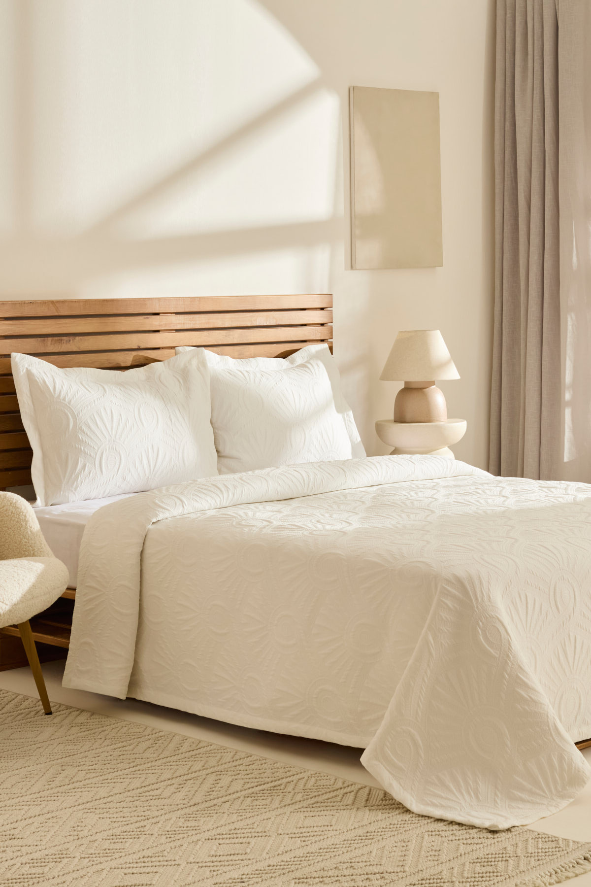 BİRHOME Sierra Jakarlı Şönil Çift Kişilik Yatak Örtüsü (krem)