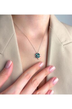 Kayra Mücevher Yeşil Taşlı Anka Kuşu Altın Kaplama Kolye Gm89