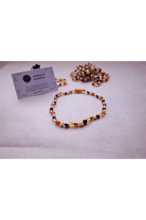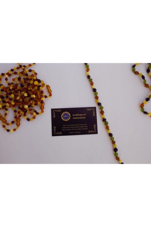 Kehribar Unisex Bebek Kahverengi Barok Kesim Yassı Multicolor 4 Renk Diş Kolyesi