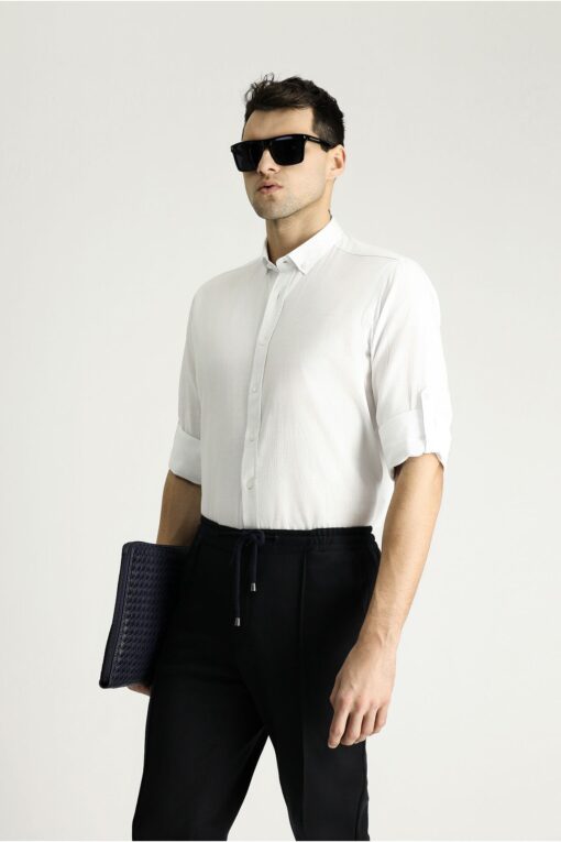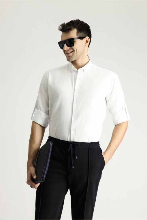 Kiğılı Uzun Kol Relax Fit Rahat Kesim Keten Görünümlü Pamuk Düğmeli Yaka Gömlek
