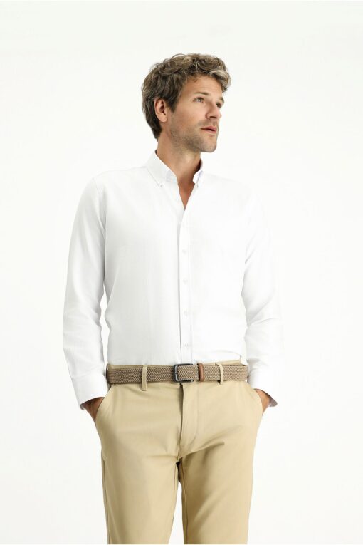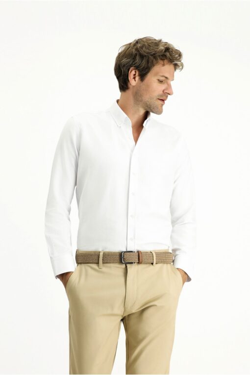 Kiğılı Uzun Kol Slim Fit Düğmeli Yaka Oxford Pamuklu Kolay Ütülenebilir Gömlek