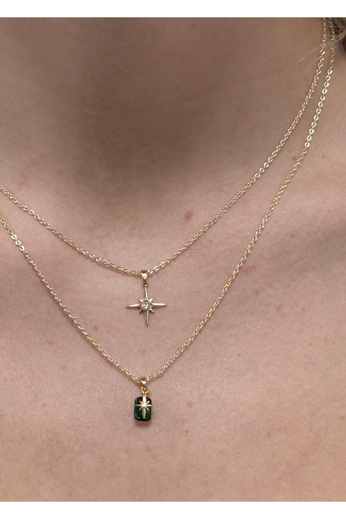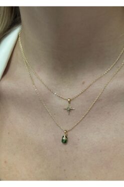 KİLİGİSTANBUL 2’Lİ KUZEY YILDIZI YEŞİL TAŞLI KOLYE