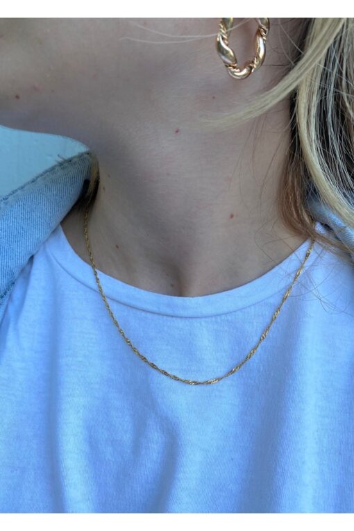 KİLİGİSTANBUL 45 Cm Gold Renk Unisex Çelik Ince 45 Cm Burgu Kolye