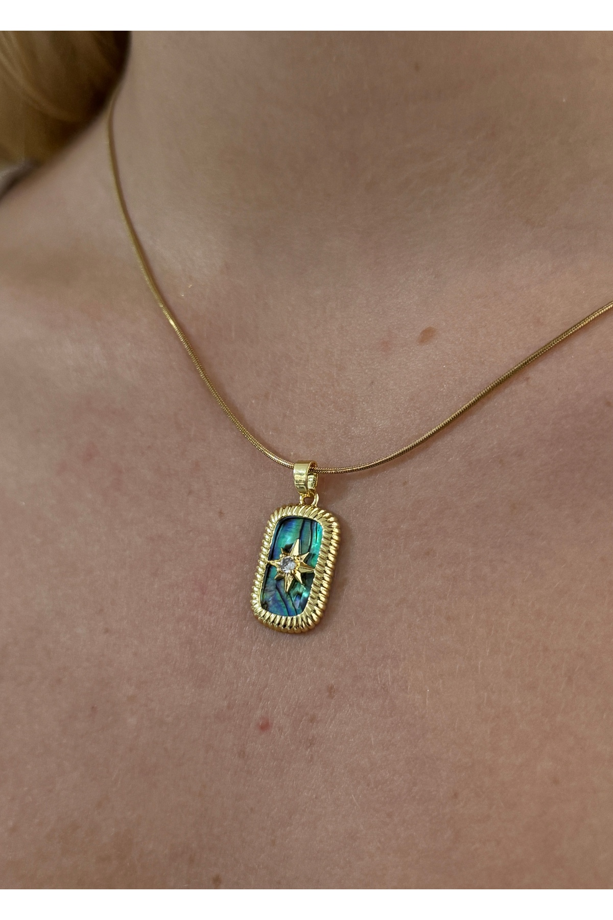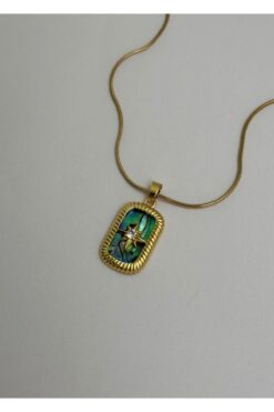 KİLİGİSTANBUL ÇELİK OVAL KUZEY YILDIZI KOLYE