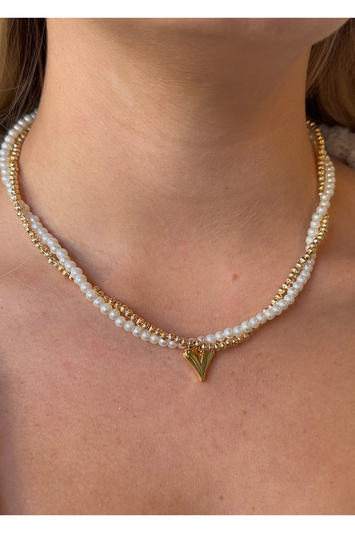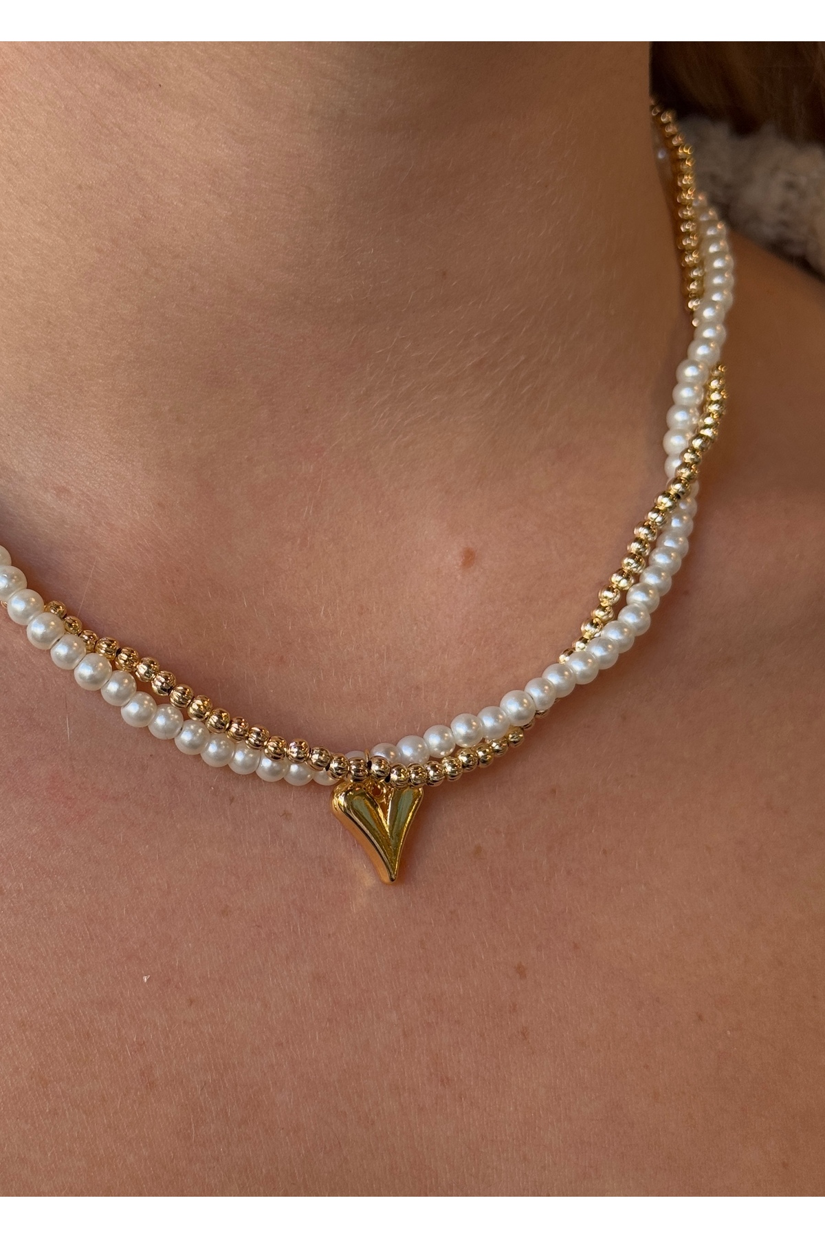 KİLİGİSTANBUL Çoklu İnci̇li̇ Kalp Kolye