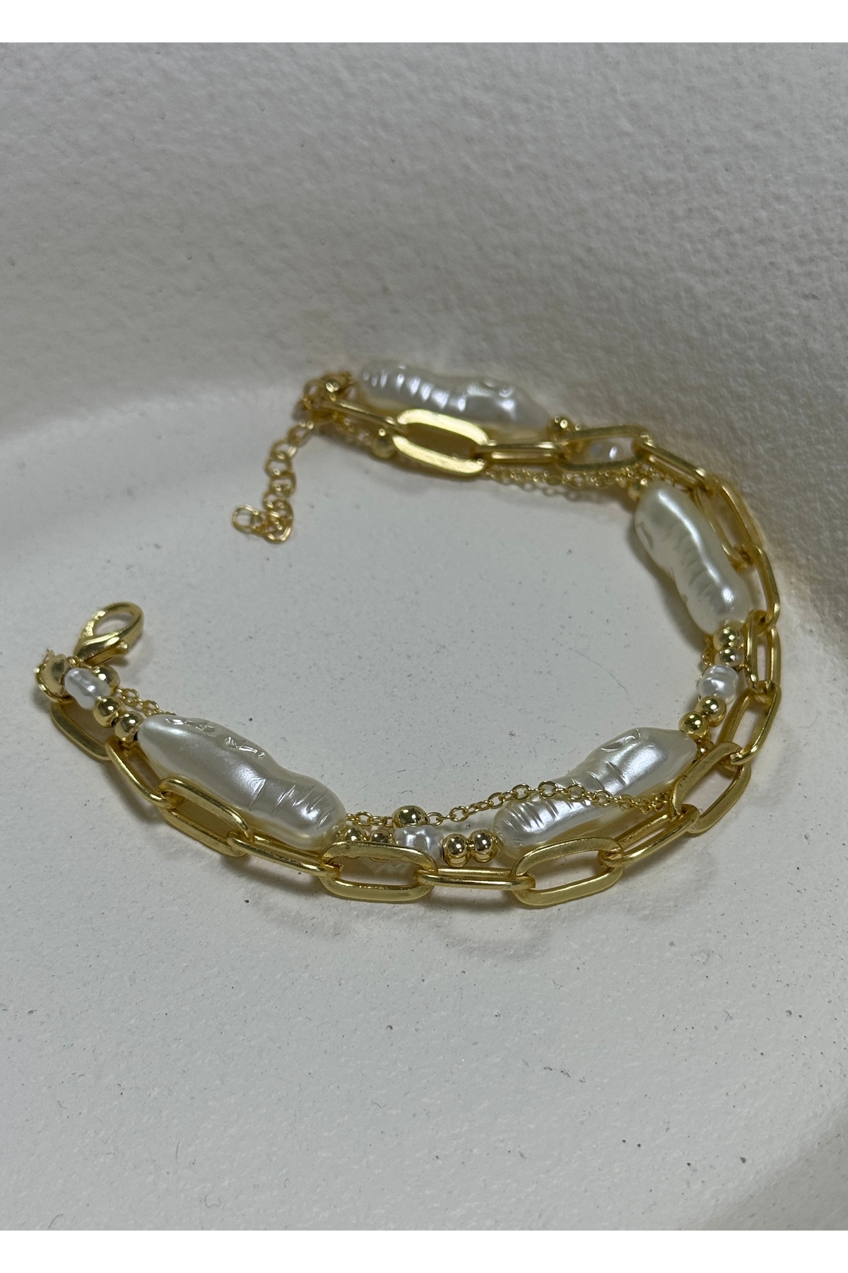 KİLİGİSTANBUL GOLD RENK 3’LÜ İNCİLİ BİLEKLİK 15+5 CM