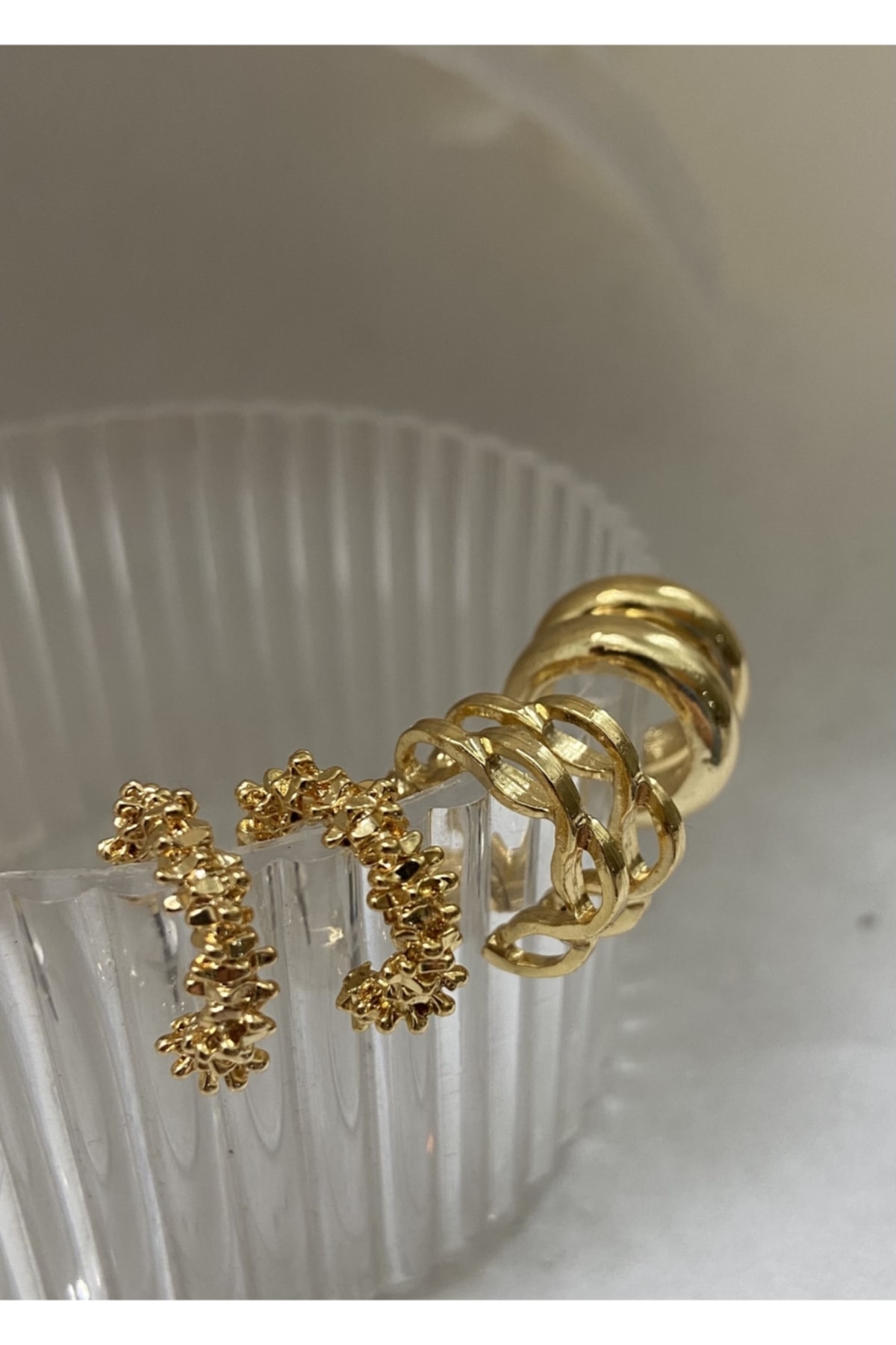 KİLİGİSTANBUL Gold Renk 6’lı Zincir & Düz Küpe Seti