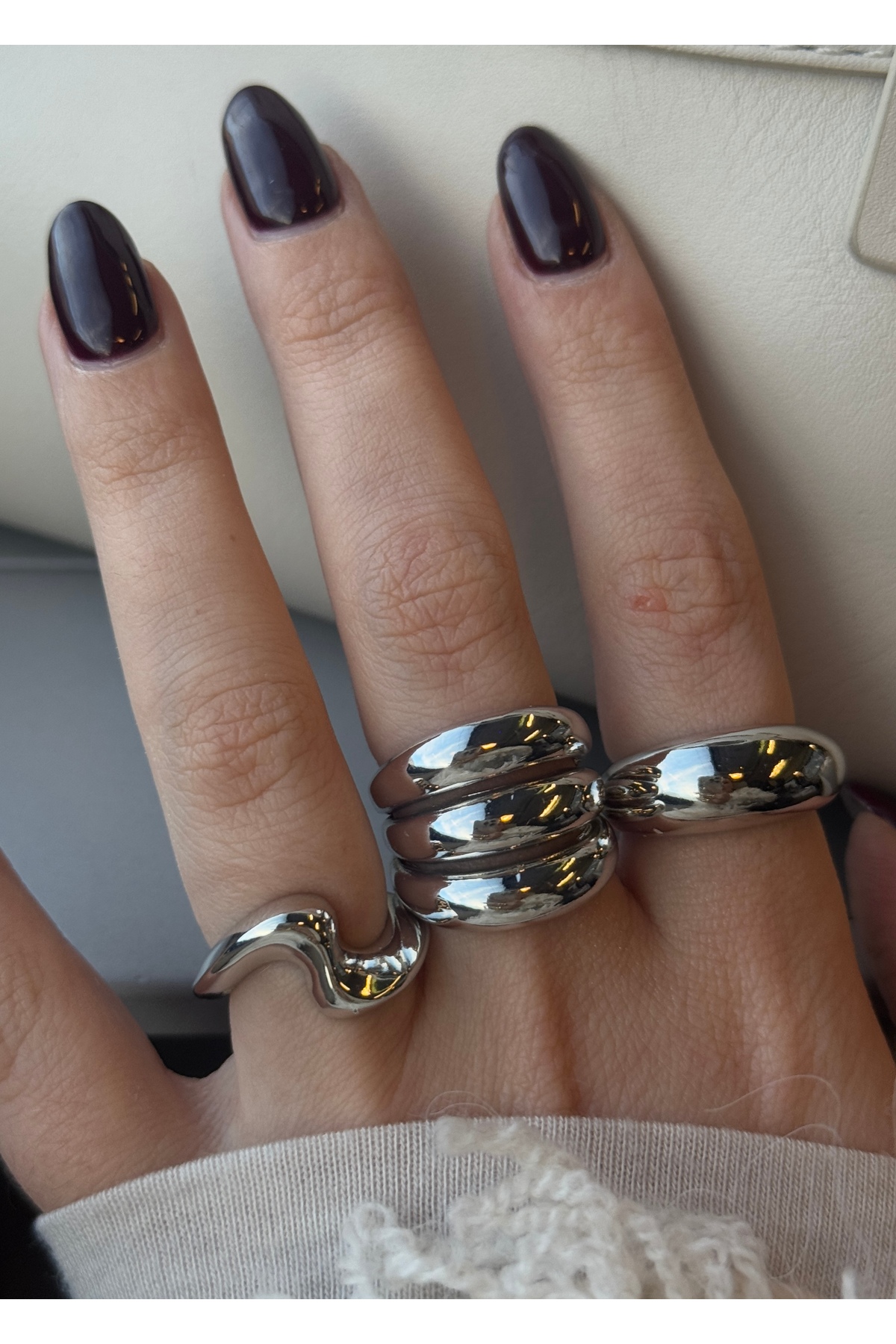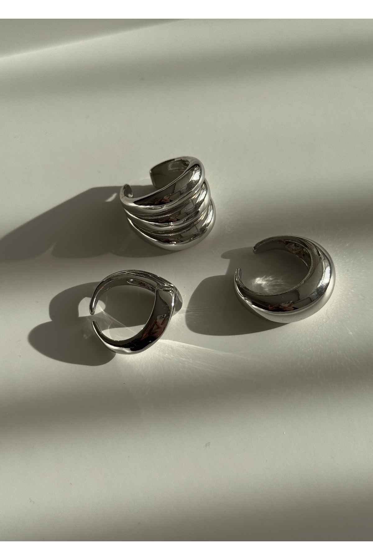KİLİGİSTANBUL GÜMÜŞ RENK FİNN 3’LÜ İRİ YÜZÜK