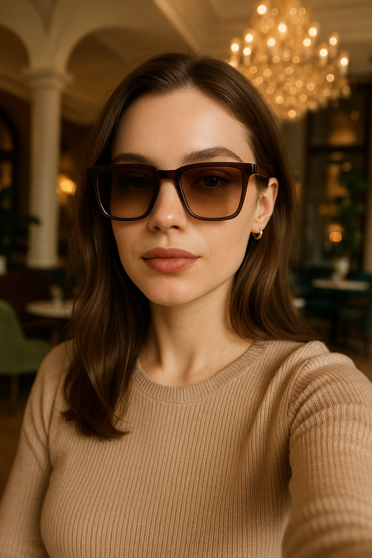 Angel Eyes Small Kare Gold-Altın Çerçeve Kahverengi Cam Minimal Güneş Gözlüğü Yüksek Kalite CE Belgesi