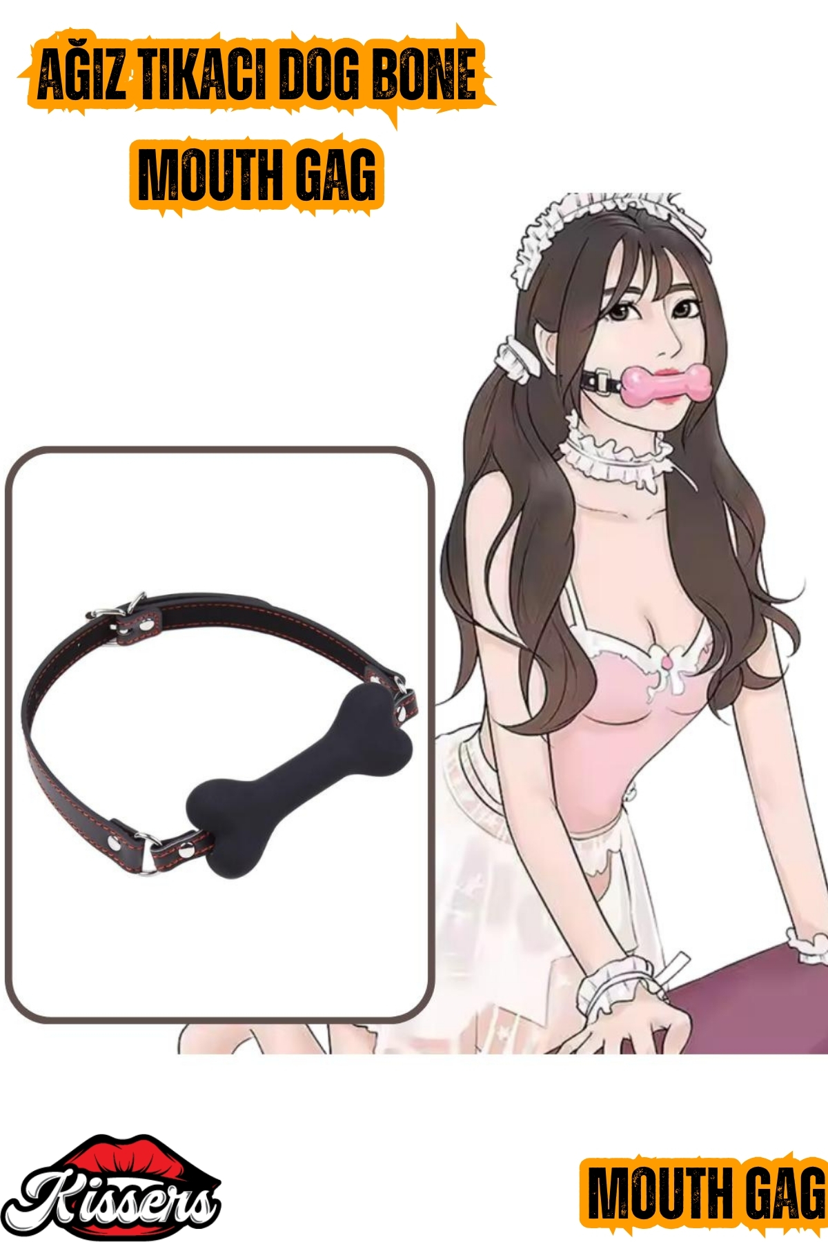Kissers BDSM Deri Kemerli Yumuşak Silikon Siyah Köpek Kemiği Ağız Tıkacı