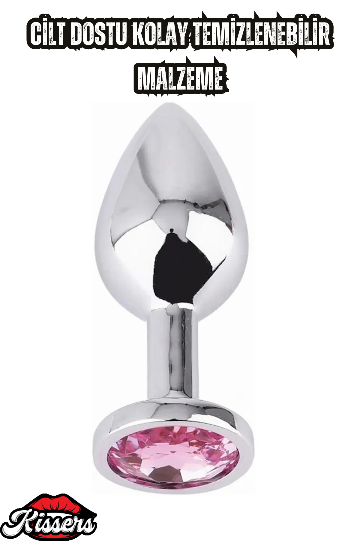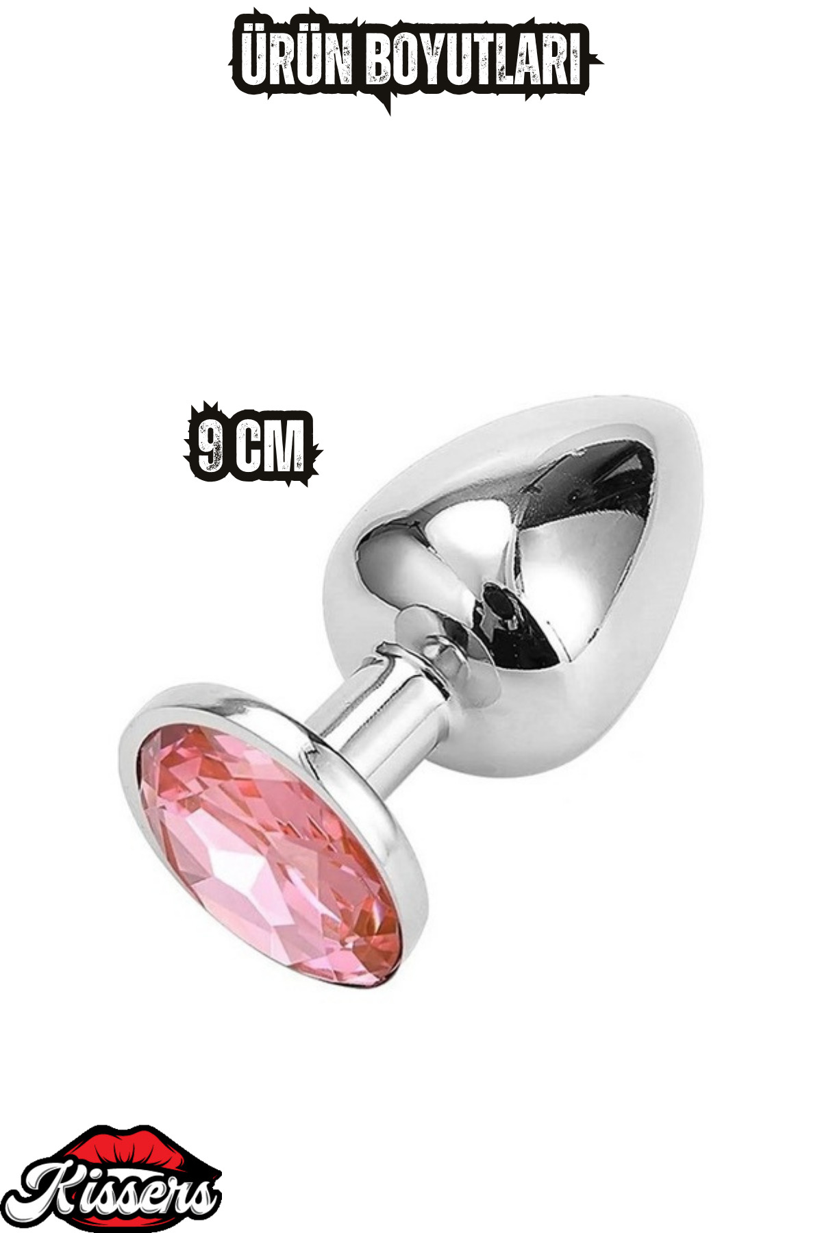 Kissers Pembe Medikal Silikon Taşlı Anal Tıkaç Gevşetici Alıştırıcı Plug 9 Cm