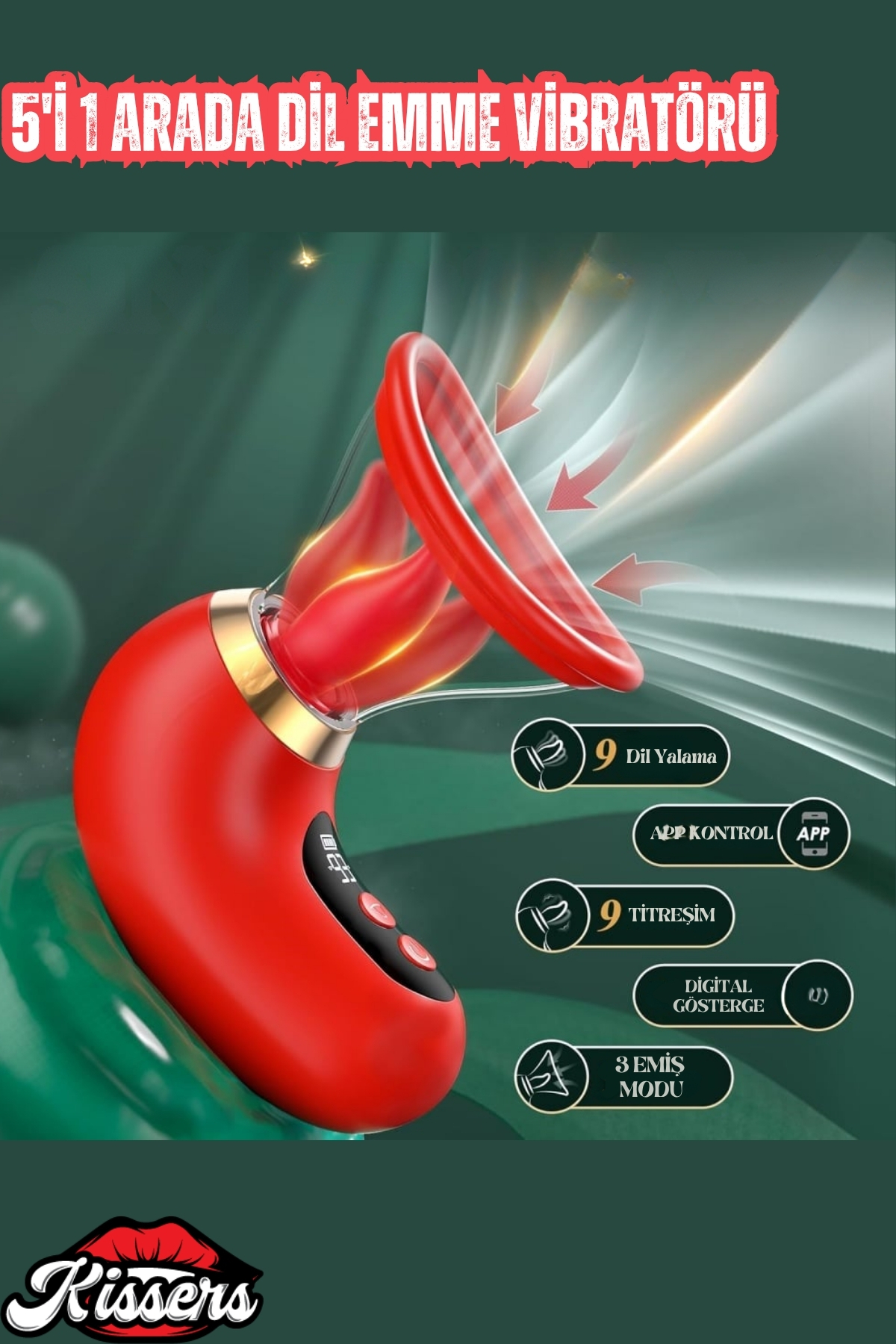 Kissers Telefon Kontrollü Emişli Titreşimli Dil Hareketli Göğüs Ve Vajina Başlıklı Vakum Vibratör