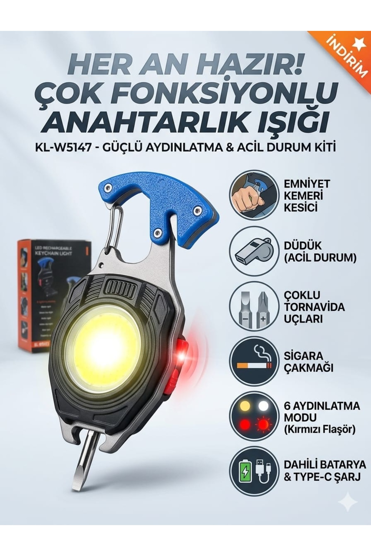 KLIGHT Çok Fonksiyonlu - Şarjlı - Anahtarlık - çakmaklı - kamp feneri KL-W5147 ürünü ucuz fiyat, hızlı kargo imkanı ile hemen sitemizden sipariş verin.