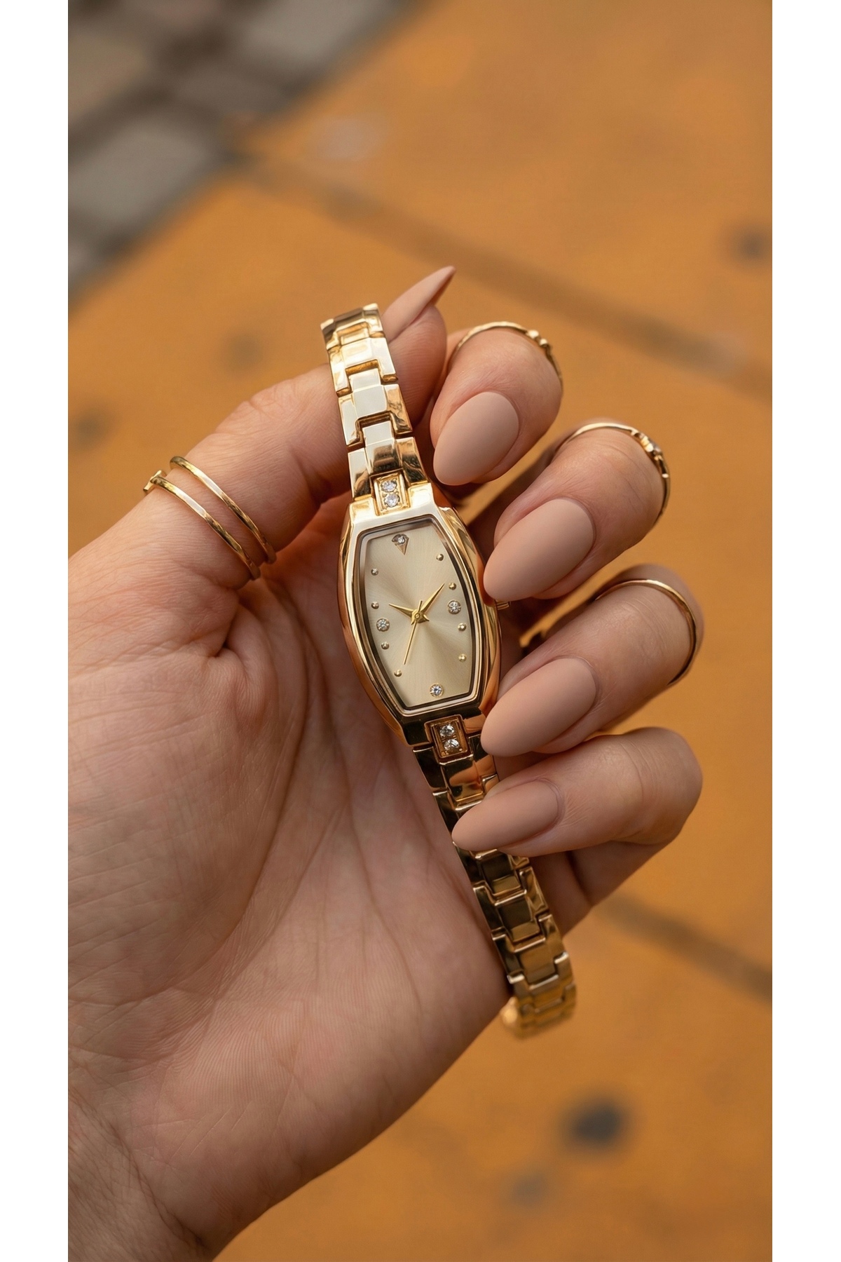KLISHE Butik Kadın Çelik Saat Gold Renk Vintage Dikdörtgen Kasa Zarif Saat | Lüks, Classic | Limited Edition 2026