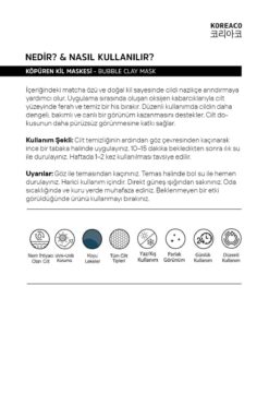 KOREACO Matcha Mucize Bubble Clay Yüz Maskesi | Gözenek Temizleyici Yenileyici Köpüren Yüz Maskesi 100 ml ürünü ucuz fiyat, hızlı kargo imkanı ile hemen sitemizden sipariş verin.