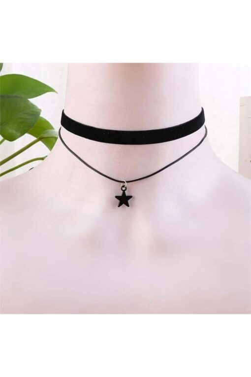 Ana Sayfa » kozmetikara.com » Aksesuar » Kolye » Bijuteri Kolye » Köstebek Tasma Detaylı Siyah Basic Yıldız Kolye
