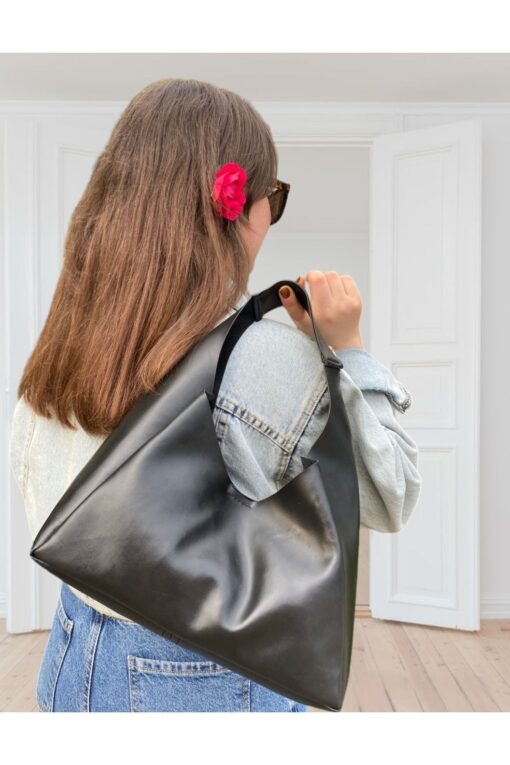Klasik ve zamansız tasarımıyla her kıyafetle uyum sağlayan düz desenli omuz çantası