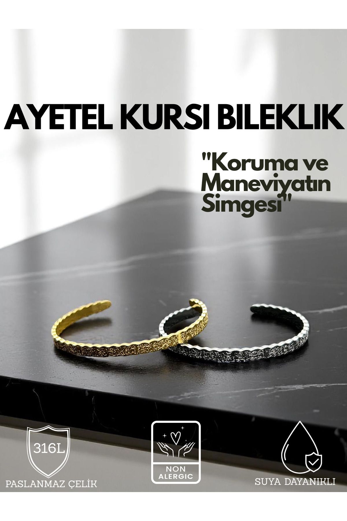 KT AKSESUAR Ayetel Kürsi Yazılı Bileklik Paslanmaz Çelik Ayarlanabilir Çift Erkek/Kadın Bileklik