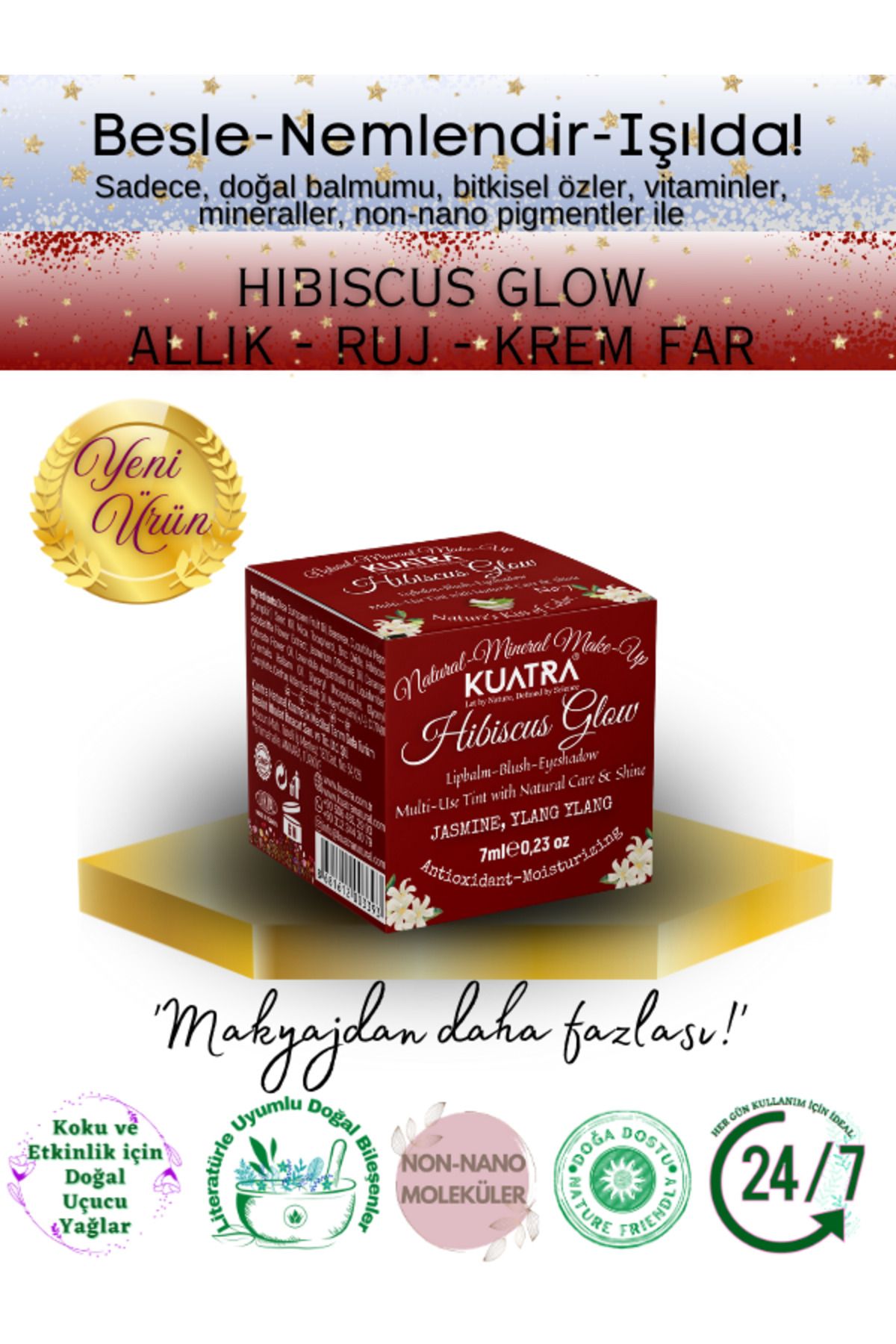KUATRA Hibiscus Glow Besleyici, Nemlendirici Allık Ruj Göz Farı Doğal İçerik