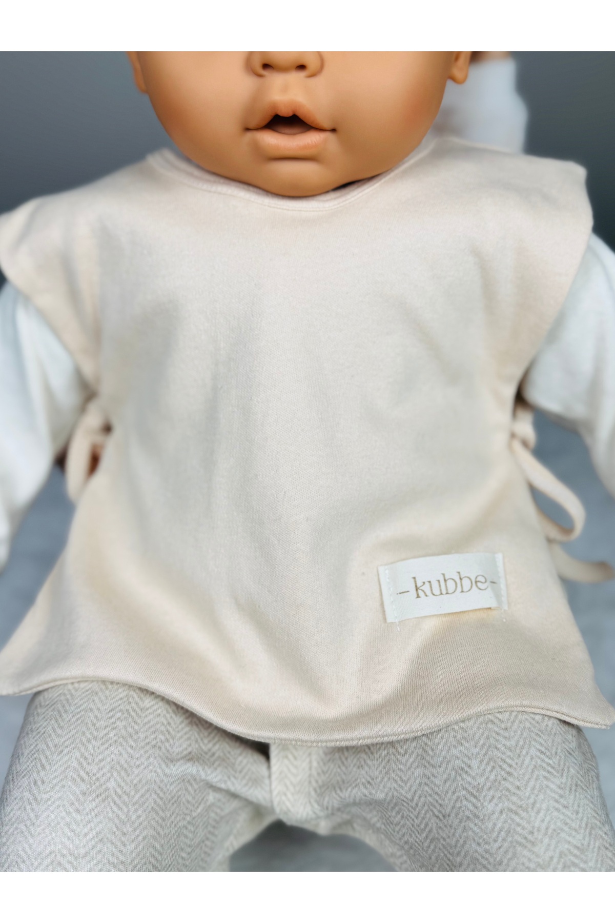 kubbe Krem Pamuklu Mama ve Salya Önlüğü | Modern Tasarım, Yüksek Emicilik ve Kolay Giydirme Sistemi