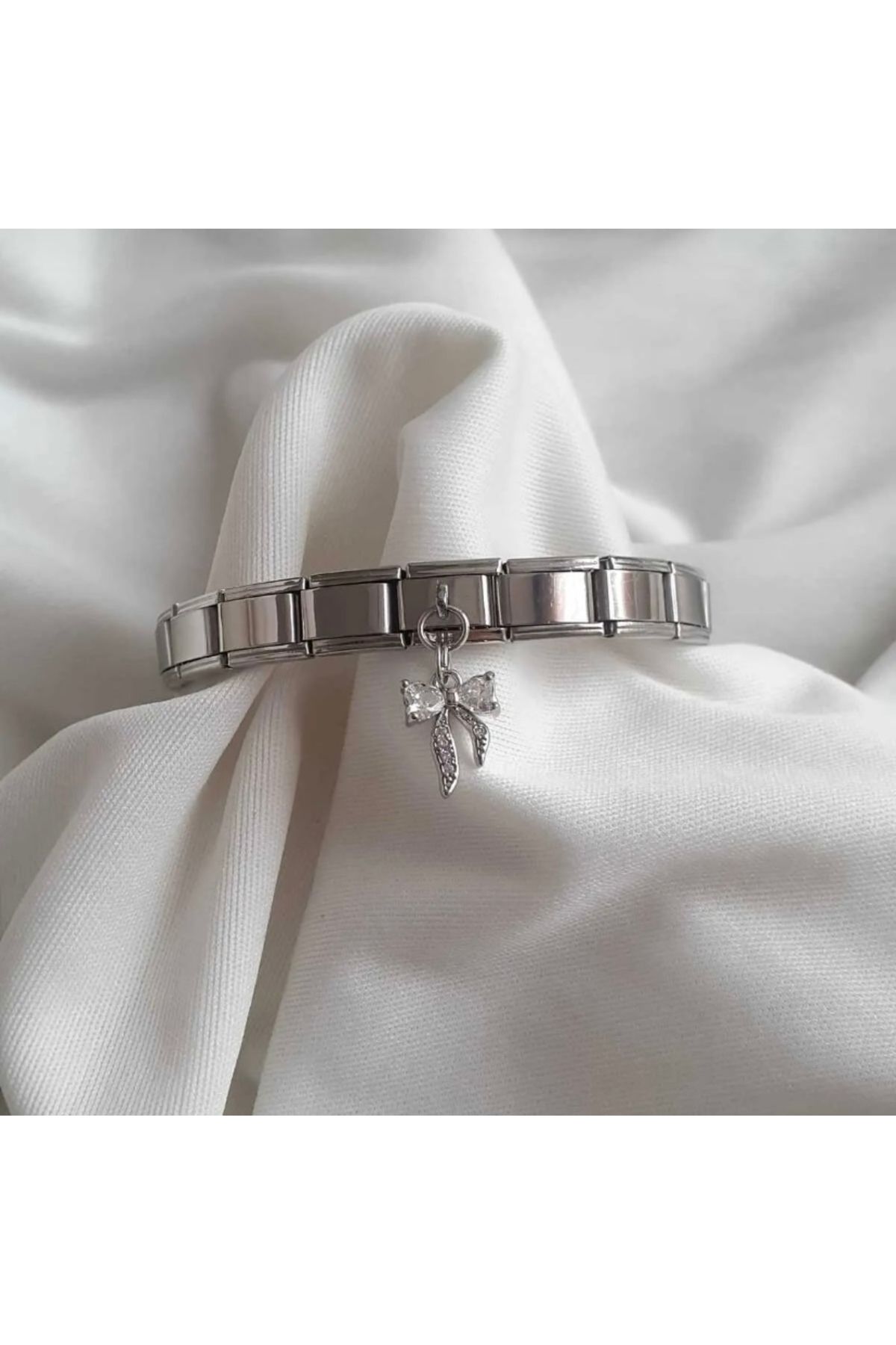kubotique Çelik Taşlı Kurdele Fiyonk Italyan Charm Bileklik 19 Cm