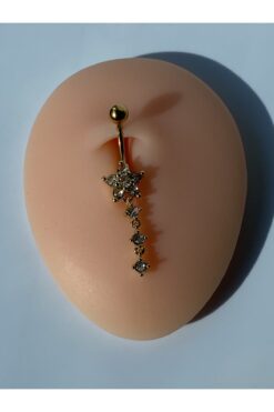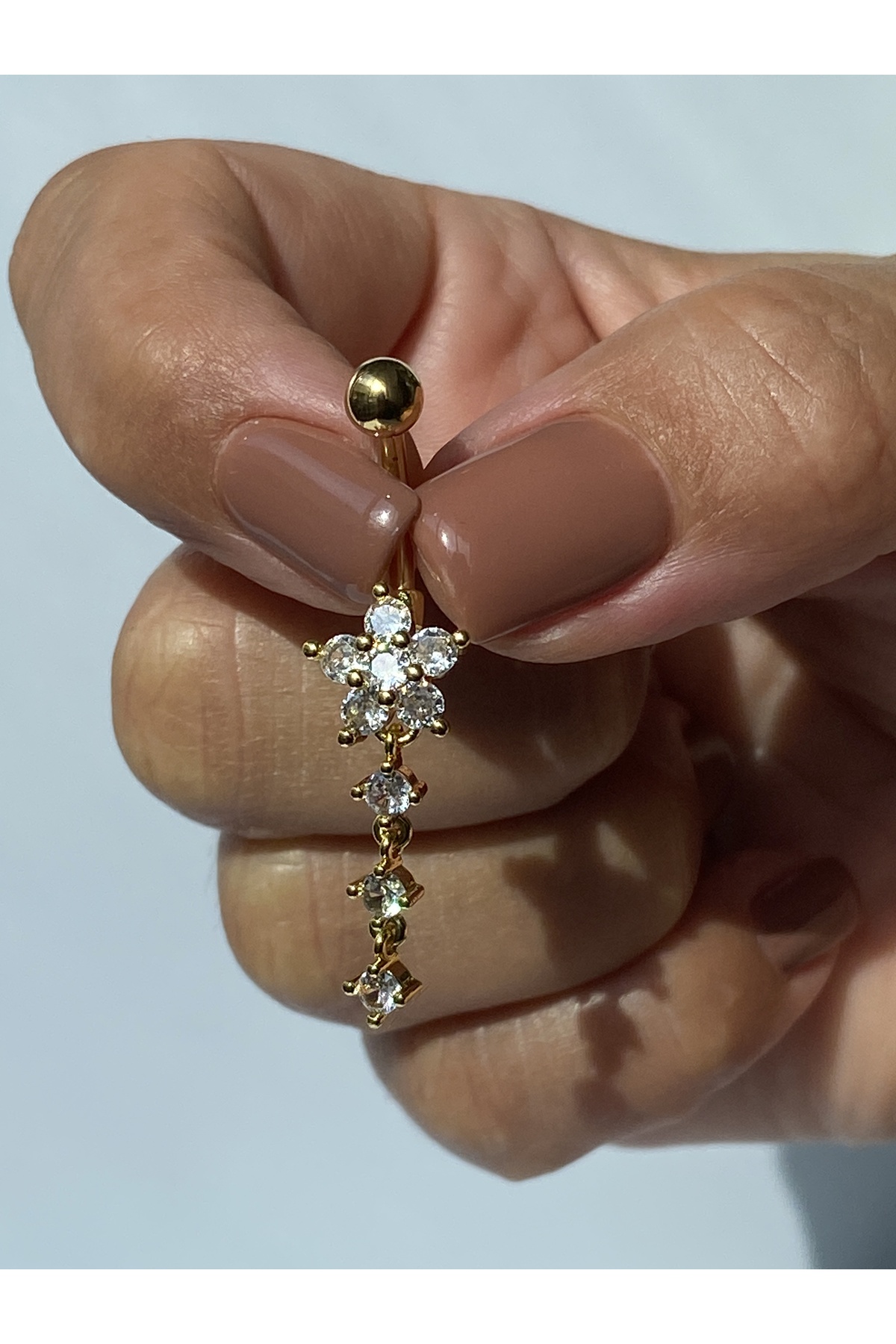 kurukafagift Göbek Çelik Piercing Uzun Sallantılı Taşlı Papatya Model