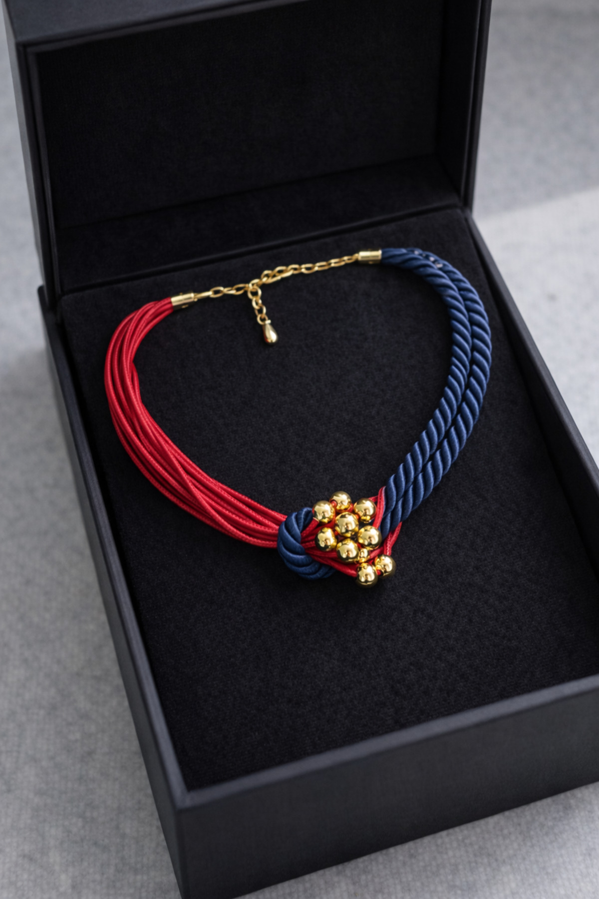 Kutcha Accessories Kırmızı Lacivert Gold Tasarım Boncuklu Kolye