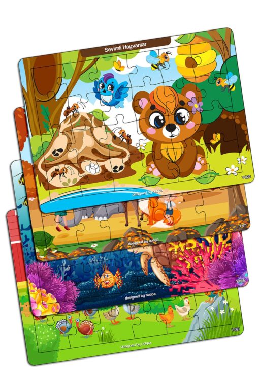 kutuTR Notpa Çocuklar Için Eğitici Ve Öğretici Ahşap Renkli Puzzle 4lü Set 3