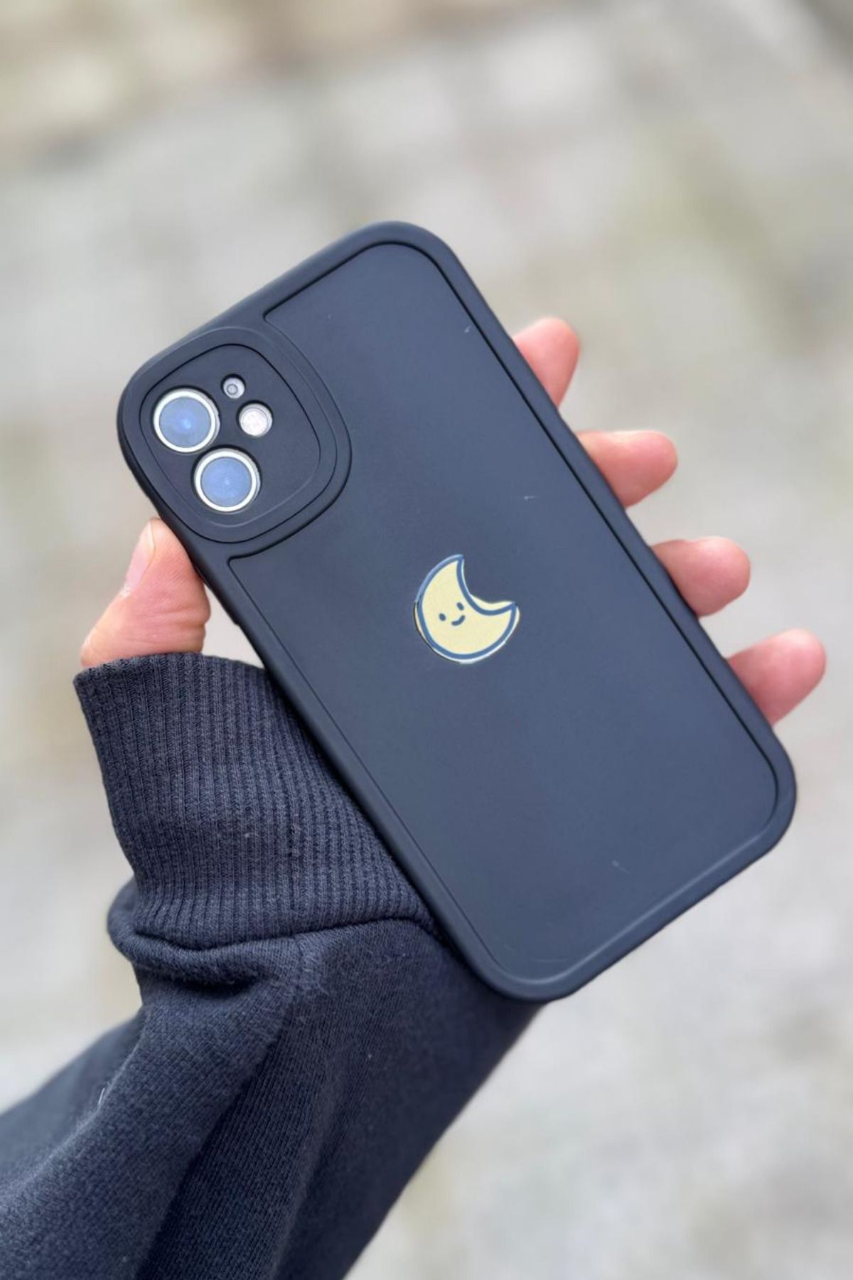 KVK PRİVACY İphone 12 Uyumlu Kılıf Ay Desenli Darbelere Dayanıklı Kamera Korumalı Silikon Kapak Siyah